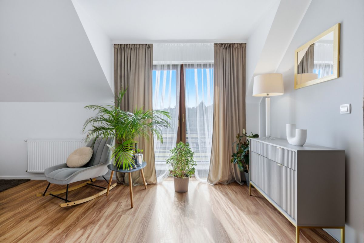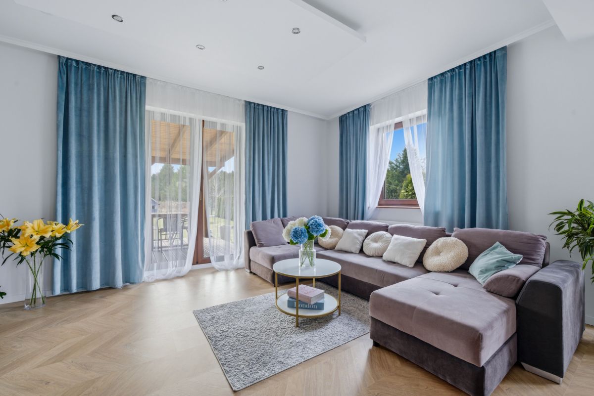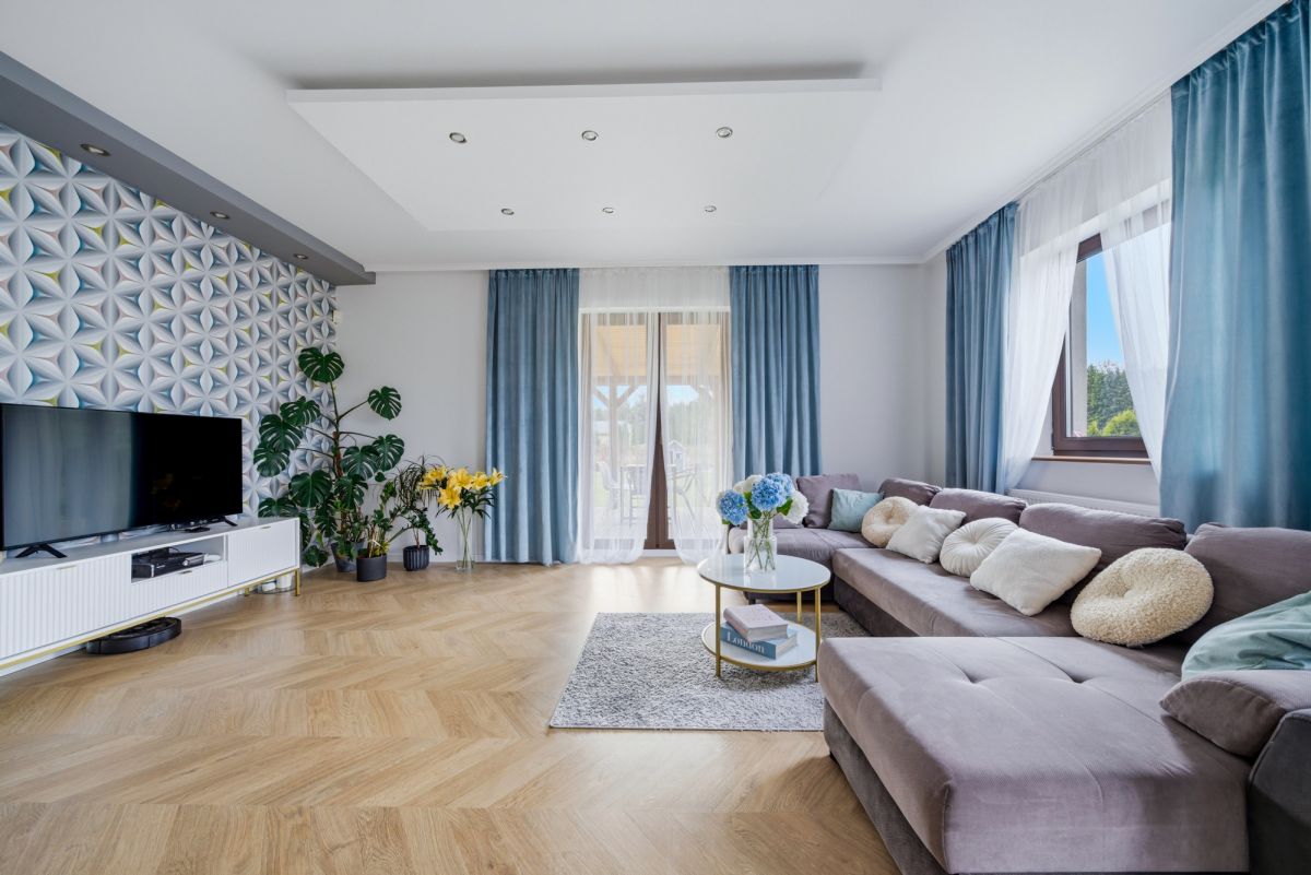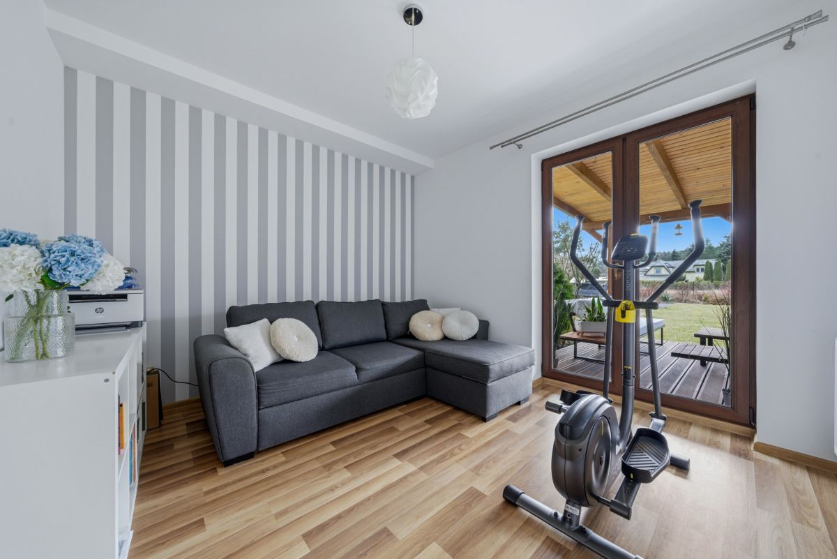 Wyjście na taras zarówno z salonu, jak i z pokoju gościnnego.