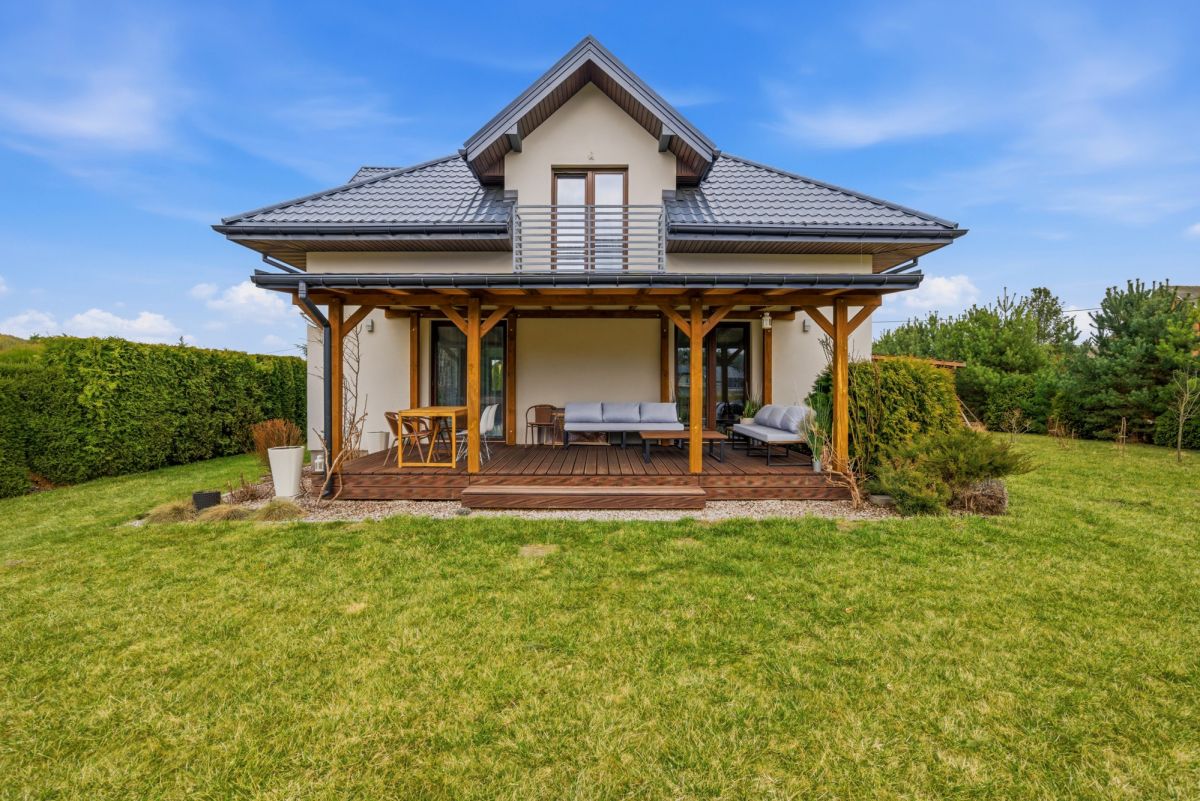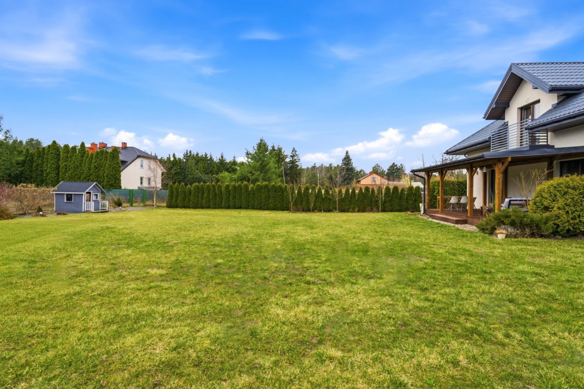 Przestronna i ustawna działka o powierzchni 1 664 m² oferuje duże możliwości aranżacji ogrodu oraz strefy wypoczynku. Znajduje się na niej zadaszony taras sprzyjający relaksowi na świeżym powietrzu, a także wydzielone miejsce na część ogrodową i kompostownik.