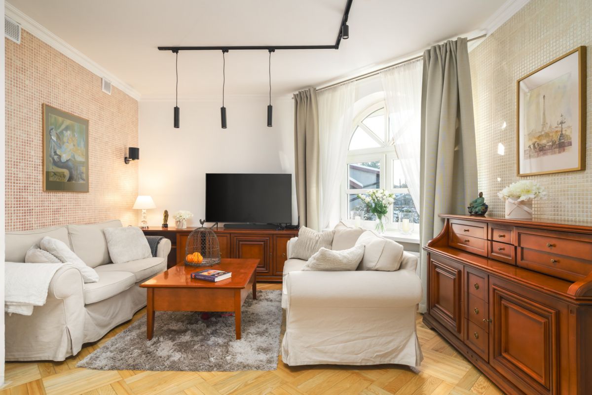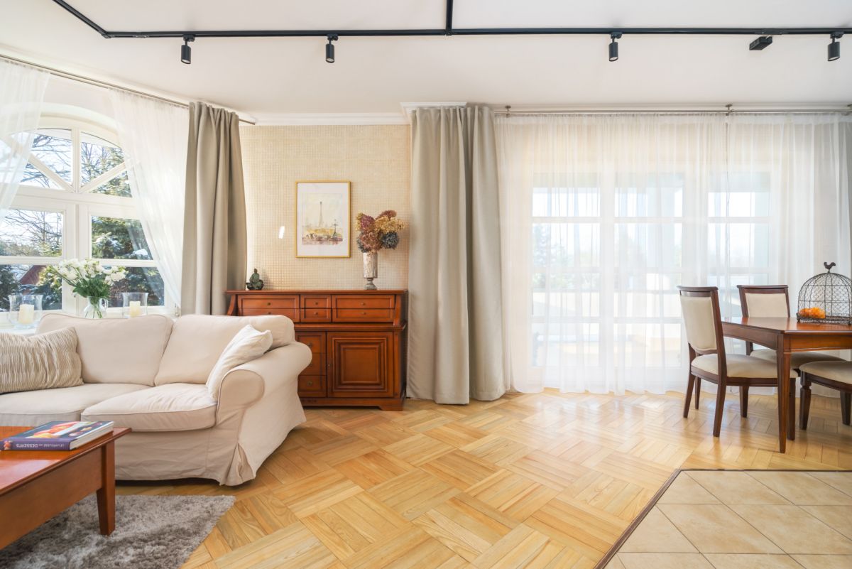 Wnętrza wykończone w neutralnym, ponadczasowym stylu.