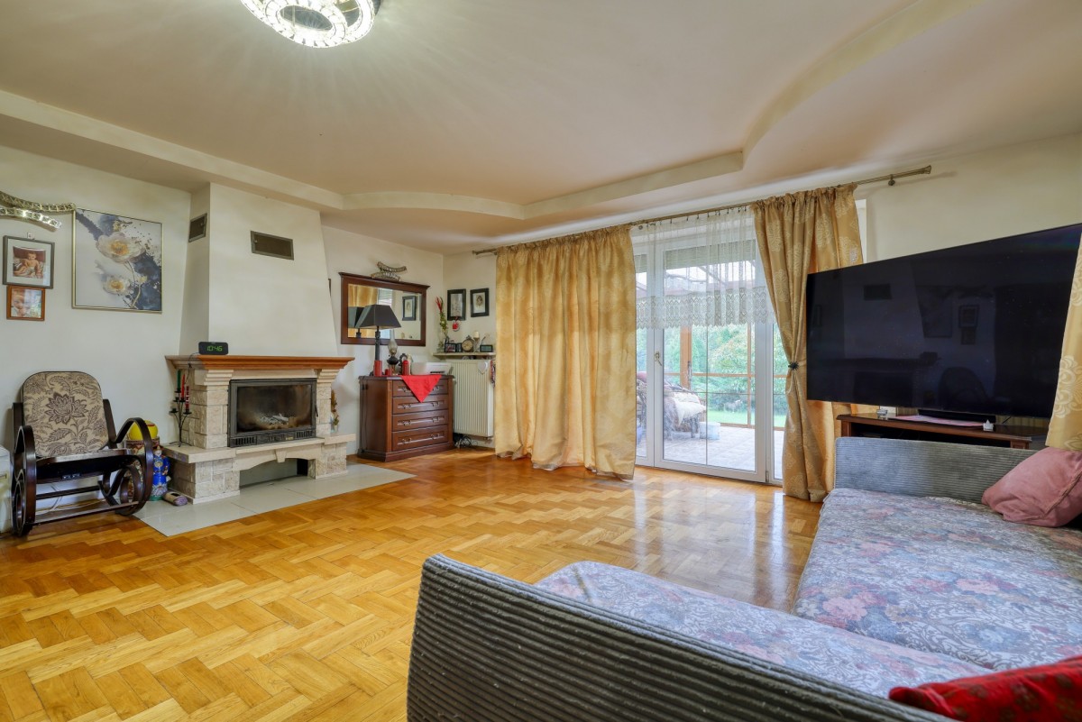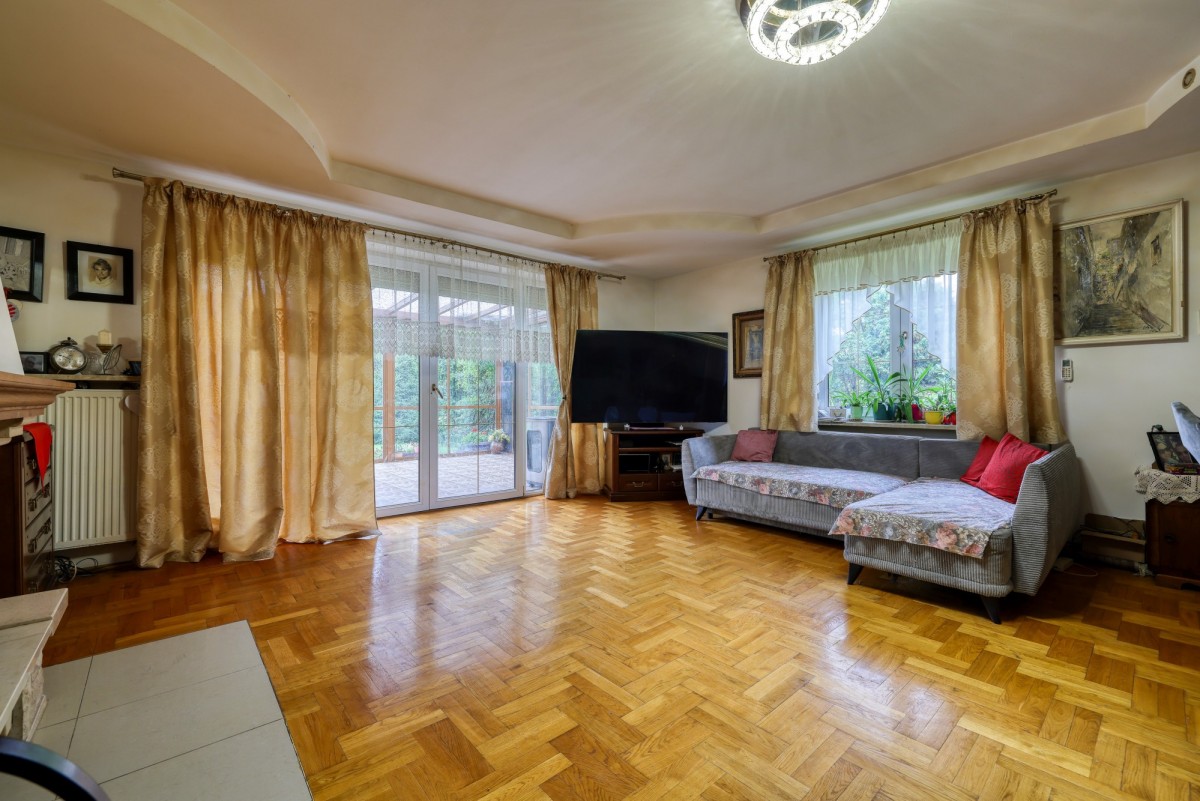 Zadbany ogród z wieloletnimi nasadzeniami zapewnia prywatność i spokój. Na posesji znajduje się taras z ogrodem zimowym, idealny do wypoczynku o każdej porze roku.