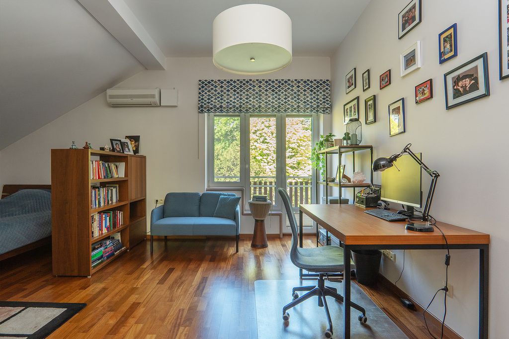 - Piętro: 4 sypialnie, 2 łazienki, garderoba.