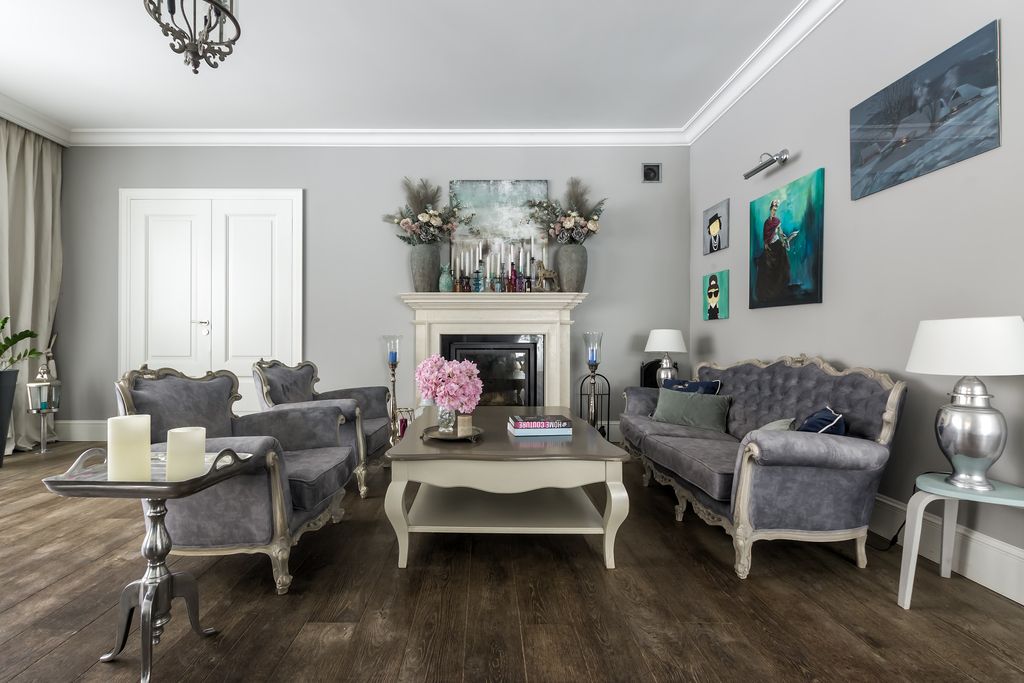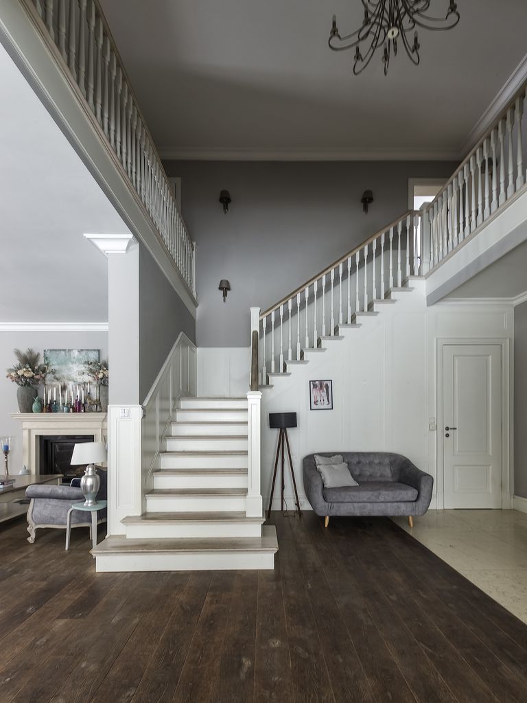 Podłogi: marmur Perlino Bianco, deski CHAPPEL na parterze, dębowe deski na piętrach