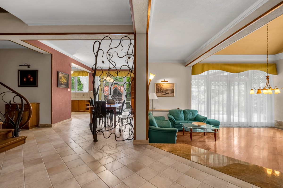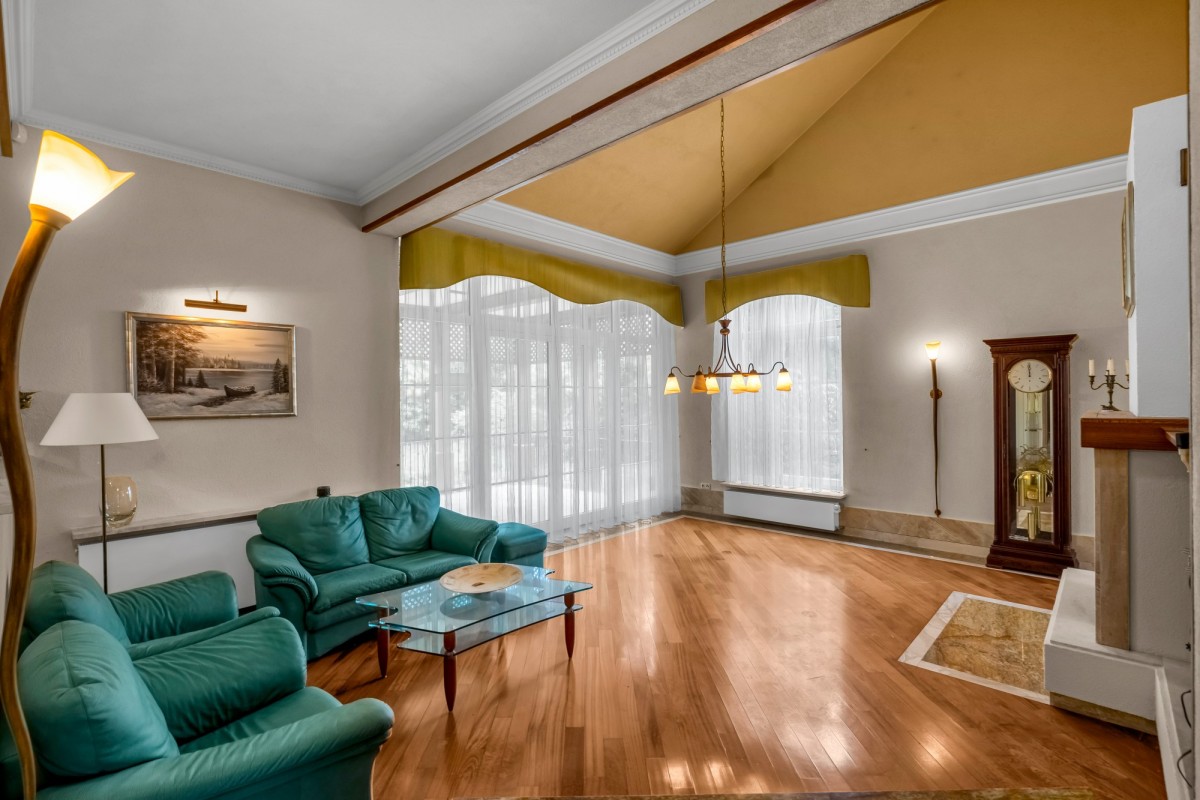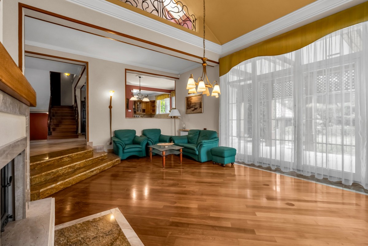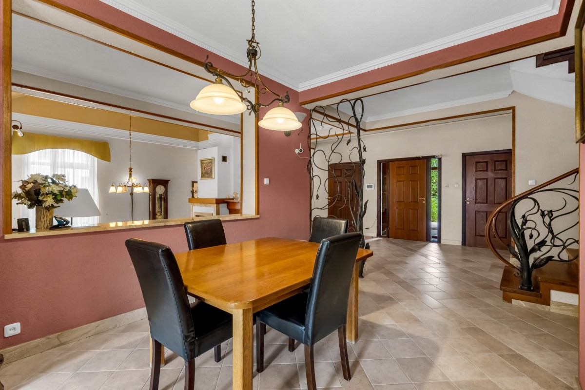 Do sprzedania w pełni umeblowany i wyposażony oraz gotowy do zamieszkania dom o powierzchni użytkowej 320 m2 i powierzchni całkowitej 509 m2. Nieruchomość położona na pięknie zagospodarowanej działce o powierzchni 1020 m2 w Chylicach, przy granicy z Konstancin-Jeziorną. Dom składa się z 8 pokoi, 2 łazienek, kuchni z jadalnią, kilku pomieszczeń gospodarczych, garażu na 2 samochody i 2 tarasów. Na działce usytuowane są altany ogrodowe i basen. Do budynku podłączone są wszystkie media.