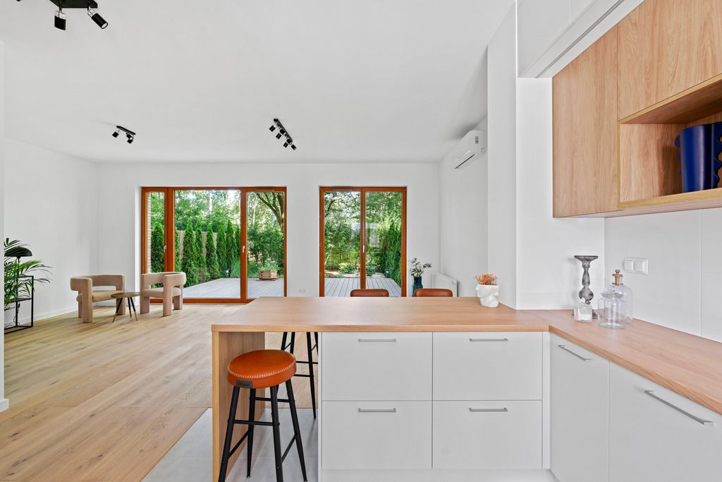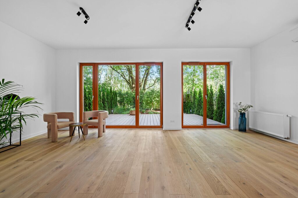 Location: The Groen estate is a gated, modern community designed with residents’ comfort in mind — directly adjacent to green areas, forests, and bike paths. It is close to international schools, shops, and restaurants. The drive to Wilanów takes about 10 minutes.