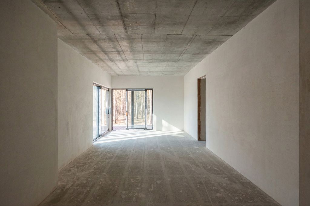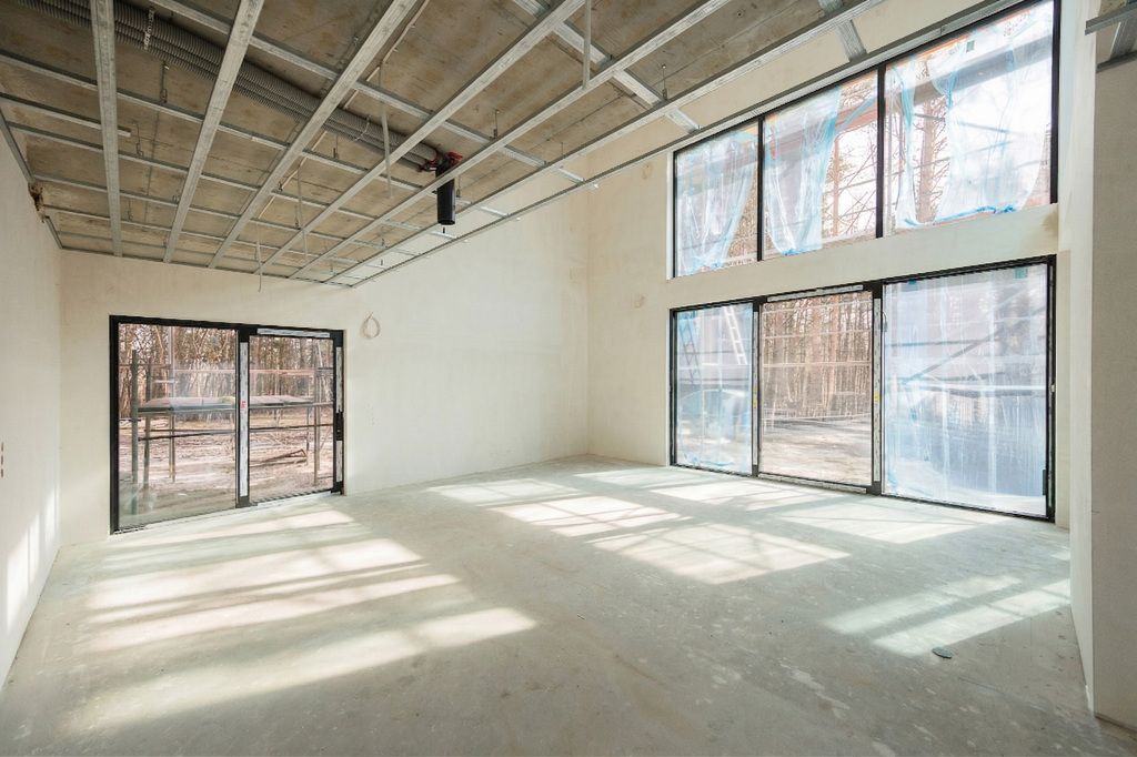 Dom jest w stanie deweloperskim. Tynki wewnętrzne, wylewki, ocieplenie budynku i dachu, stolarka okienna i drzwiowa oraz wszystkie instalacje są wykonane i odebrane. Kotłownia, garaż oraz siłownia są wyłożone płytkami gresowymi. Konstrukcja pod sufity podwieszane jest gotowa, a materiały zakupione. Pozostałe prace wykończeniowe to wyłącznie kwestia gustu i wyboru nowego właściciela.