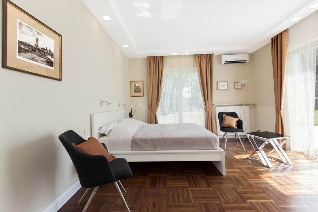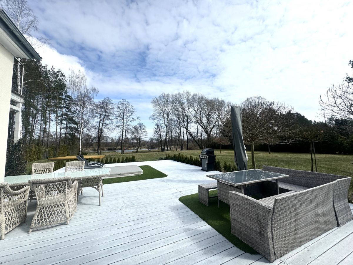 Wysoki standard wykończeń oraz piękny widok na rzekę Narew to atuty nieruchomosci. Podłogi w pokojach wykończone dobrej jakości parkietem merbau, a łazienki marmurem. W domu znajduje się sporo miejsc do przechowywania, pralnia oraz toaleta dla gości. W budynku jest woda miejska, prąd, klimatyzacja, wi-fi, szambo, gaz oraz instalacja antywłamaniową. Przed ogrodzeniem jest 8 miejsc postojowych.