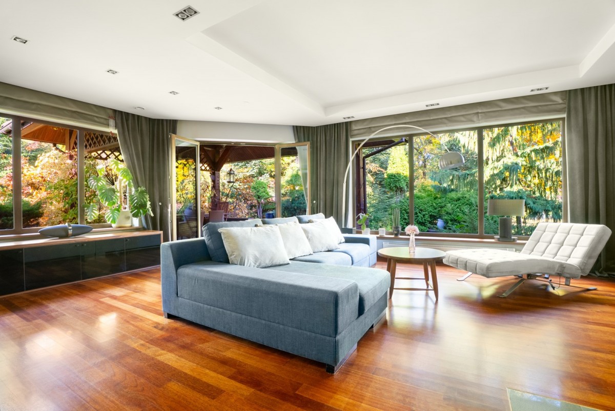 • Podłogi z egzotycznego drewna i naturalne materiały wykończeniowe tworzą ponadczasowy, elegancki charakter wnętrz