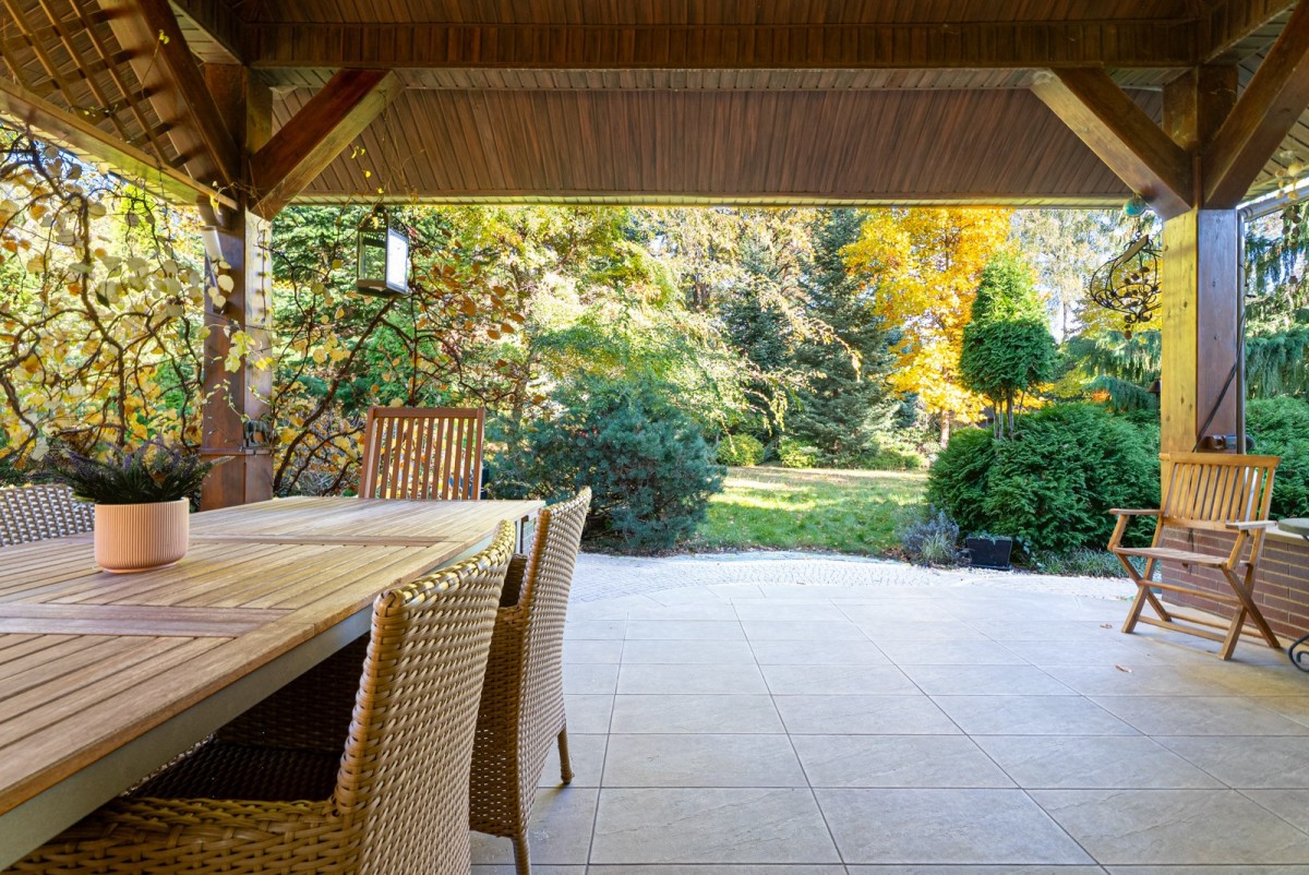 • Duża, słoneczna, pięknie zagospodarowana działka z tarasem i klimatycznym ogrodem, otoczona starodrzewiem