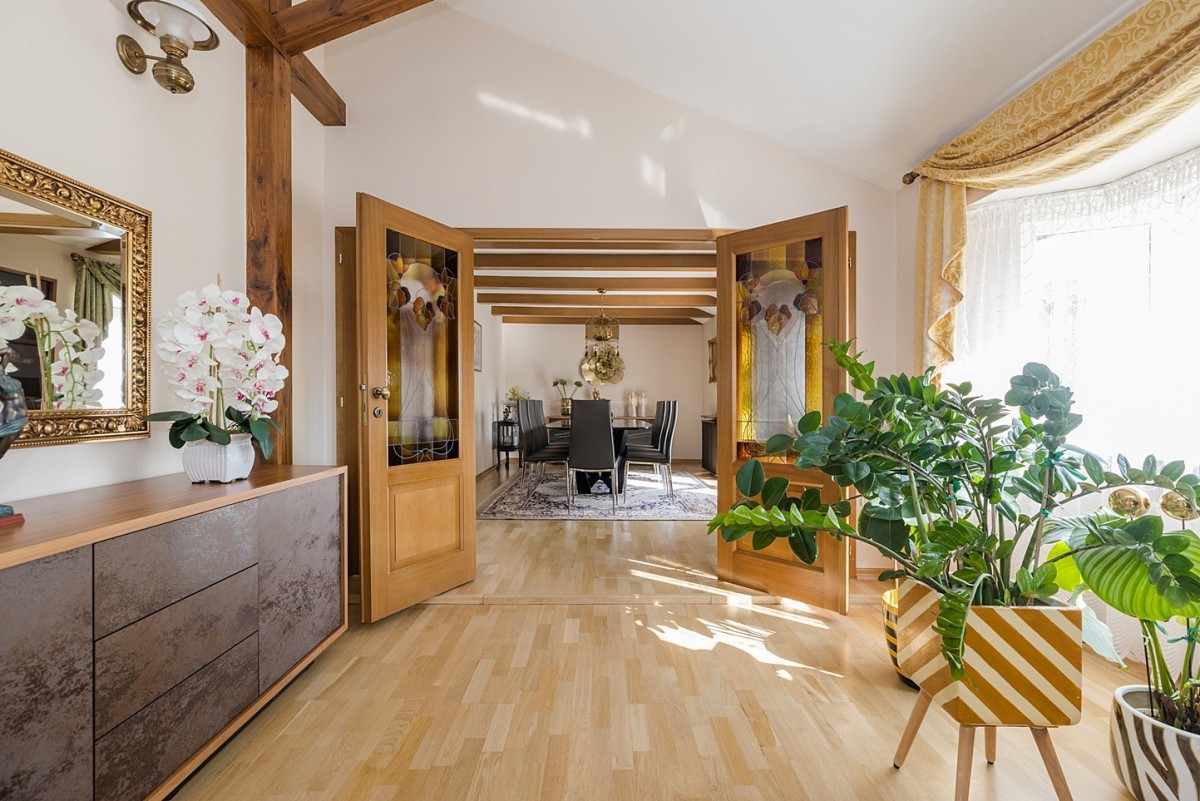 Zapraszamy do wyjątkowej willi, która łączy komfort, elegancję i nowoczesne rozwiązania. To przestronny dom w zacisznej okolicy, zaledwie 8 km od centrum Warszawy, idealny dla osób szukających luksusowego azylu z dala od zgiełku miasta, w dogodnej lokalizacji biznesowej.