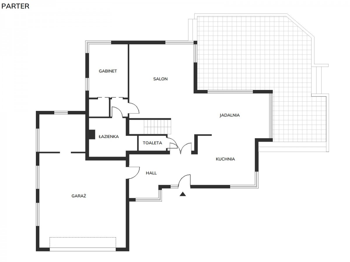 * jadalnia z dużym stołem, obok wyjścia na taras,