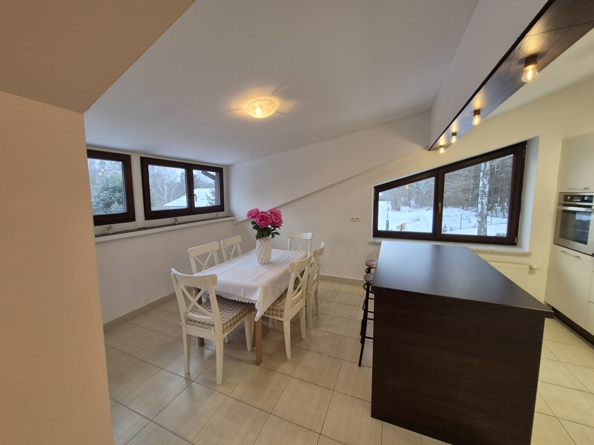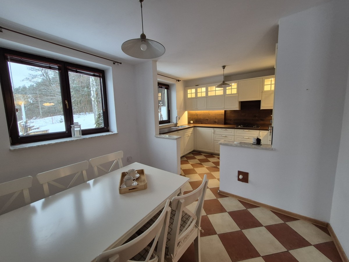 Z okien rozpościera się widok na las, a bliskość Zalewu Zegrzyńskiego i Puszczy Słupeckiej czyni to miejsce idealnym do życia i wypoczynku.