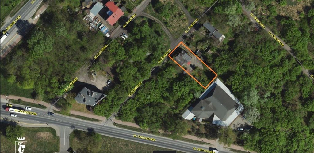 SKRÓT: Działka aktualnie zabudowana domem z wiatą i pomieszczeniem gospodarczym - w odległości 85 m od ul. Zabranieckiej.