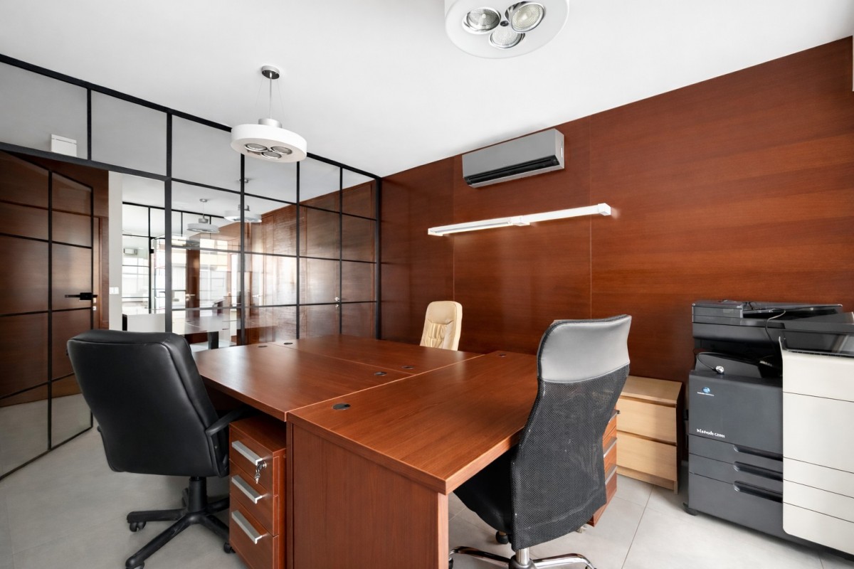 The current layout is very practical - it includes a spacious corridor with a waiting area for clients, a separate conference room, and three independent offices. This makes the property ideal for a law firm, consulting office, company headquarters, private practice, or design studio.