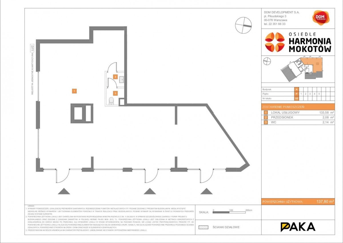 • Lokal znajduje się w inwestycji „HARMONIA MOKOTÓW” - osiedlu składającym się z 10 bloków po 5 pięter, co generuje duży ruch pieszy i stałą bazę klientów.