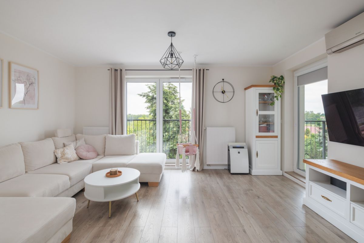 Czteropokojowe mieszkanie o łącznej powierzchni 91,04m², usytuowane w kameralnym budynku z 2019 roku na zamkniętym, monitorowanym terenie w Duchnicach, niedaleko Warszawy.