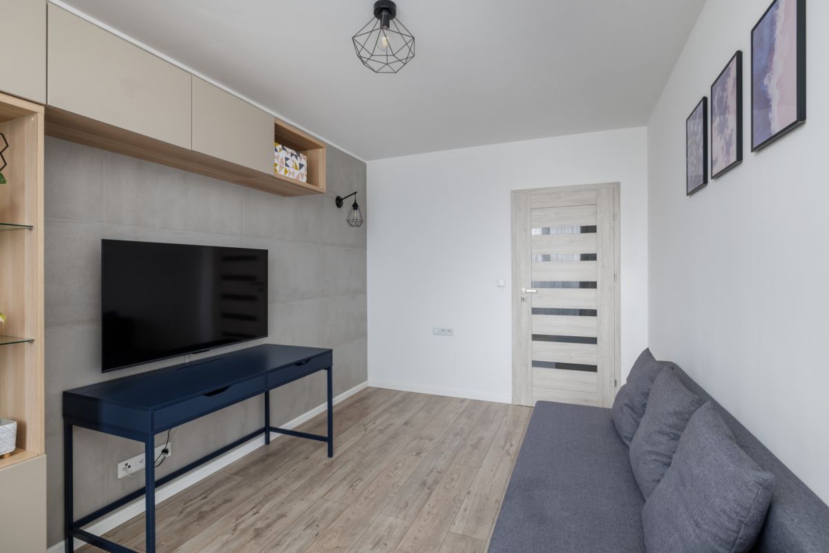 - przyłącza TV i internetowe (światłowód) w każdym pokoju,