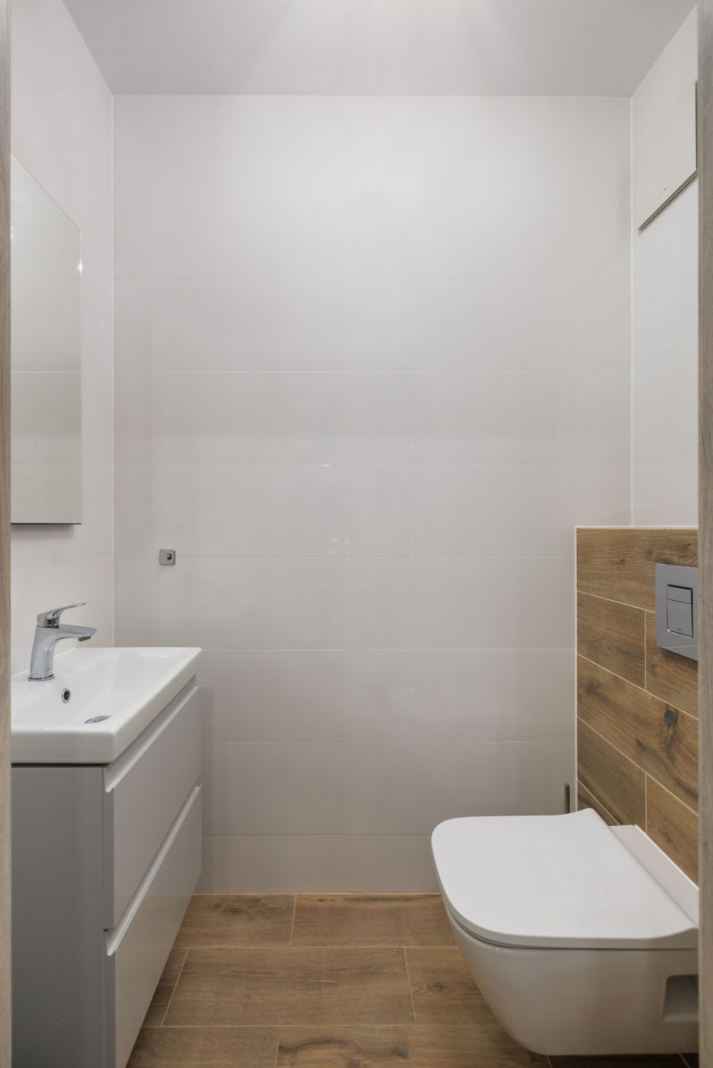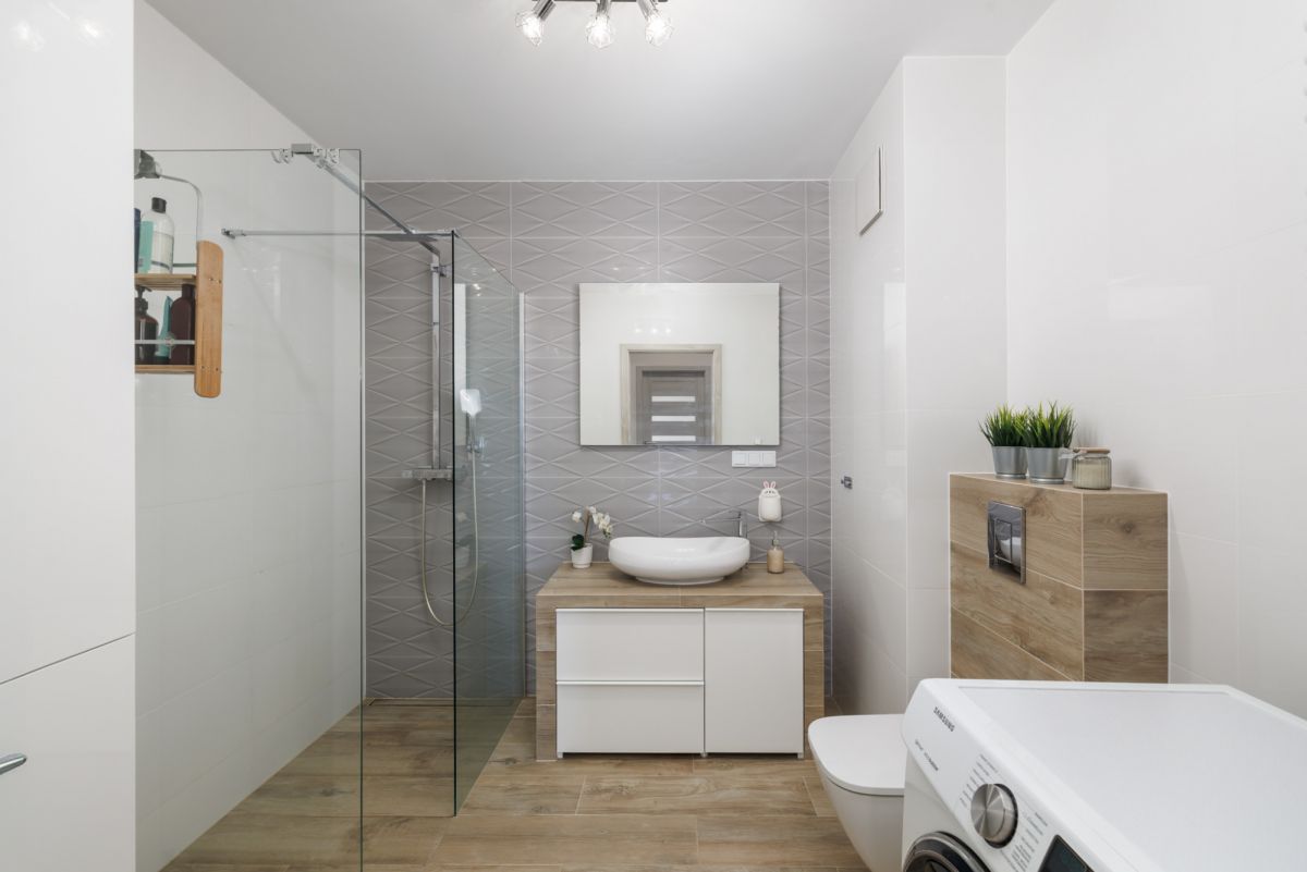 - łazienka wykończona w wysokim standardzie z nowoczesnym prysznicem walk-in oraz pralką 6,45m²,