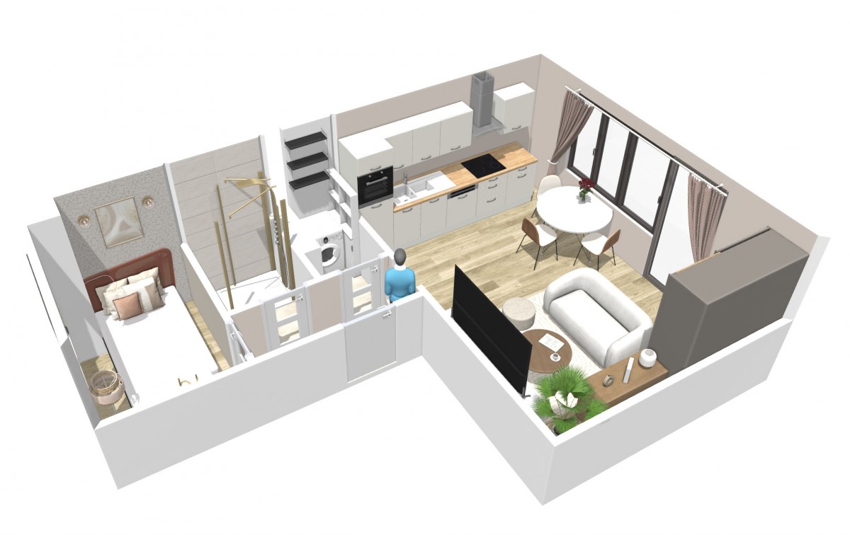 • Salon z wydzieloną strefą sypialnianą (południowy-zachód)