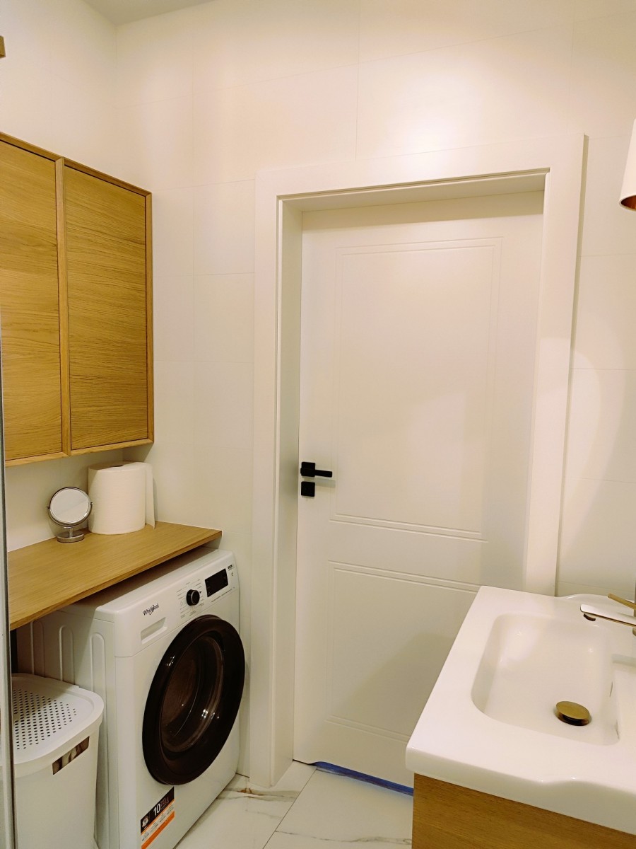 Pokój dzienny z aneksem kuchennym 25,51m, pokój 14,4m2, pokój 8,12m2, wiatrołap 1,71m2, spiżarka 1,67m2, hol 4,44m2, łazienka 4,10m2. Kuchnia została urządzone z uwzględnieniem zasad ergonomii i wyposażono ją w sprzęty znanych marek, zmywarka, pakowna lodówka, piekarnik parowy z grillem, płyta indukcyjna, wyjątkowo zgrabny okap. Zabudowa meblowa pomieści wszystkie niezbędne akcesoria a blat pozwoli wygodnie przygotowywać posiłki. W przedpokoju jasne szafy wnękowe, które pomieszczą sporo rzeczy. Łazienkę urządzono jasnymi płytkami z naturalnymi dodatkami, z kabiną prysznicową i szafką, bidettą, pralką i ładnie dopasowanym lustrem.