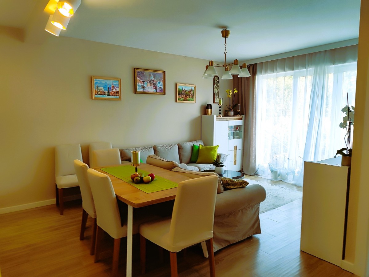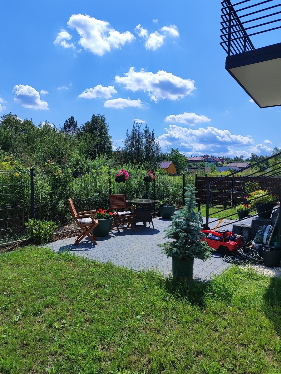 Nowe mieszkanie 59,95m2 z ogrodem 123m2, miejscami parkingowymi, domkiem ogrodowym i przepięknym widokiem na zieloną przestrzeń.