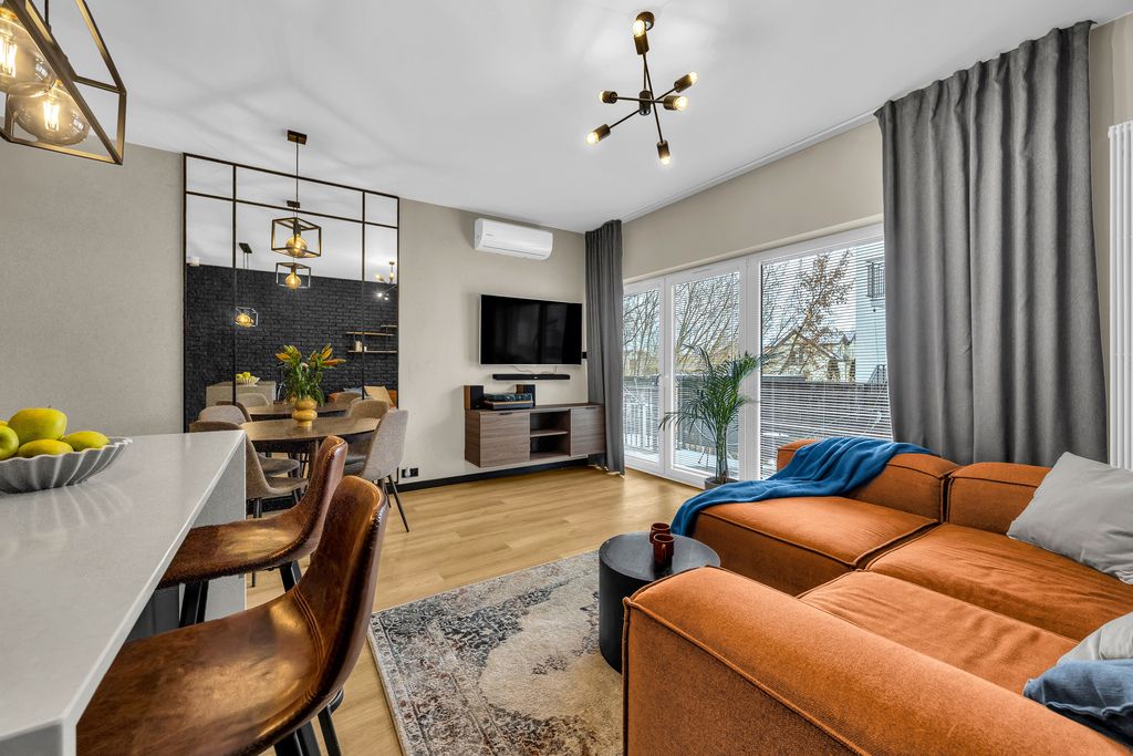 This apartment, located in the intimate Osiedle Metropolia development on Wesoła Street in Marki, proves that you really can have both peace and a quick connection to the city. Just hop onto the S8 expressway and you’ll reach Warsaw in 15–25 minutes. Prefer public transport? Around 25–35 minutes by bus to the metro or city center. And if shopping is more your thing than office buildings, CH Targówek shopping center is just a short drive away.