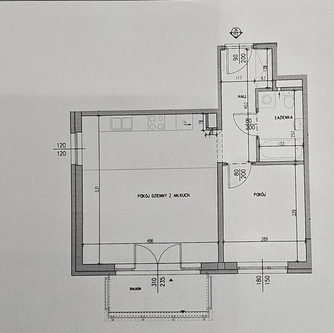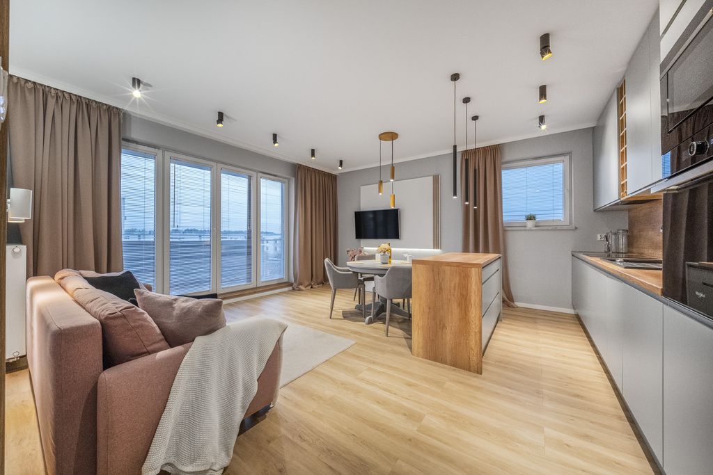 Salon z aneksem kuchennym – zabudowa wykonana na wymiar - 25,50m2, wyjście na duży balkon - 4,68m2