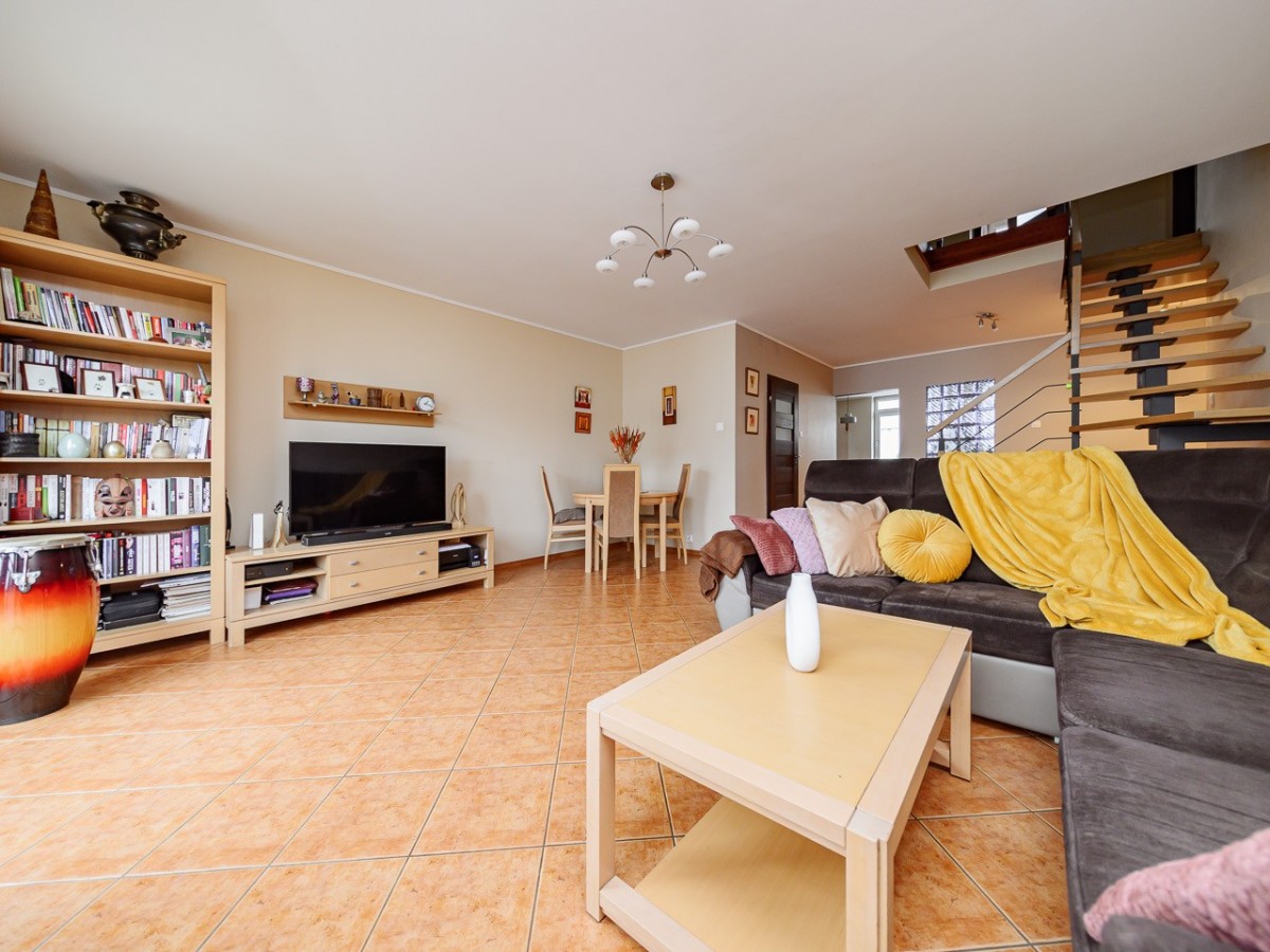 Przestronne, dwupoziomowe mieszkanie o powierzchni 117,34 m², położone na 3. piętrze budynku bez windy przy ul. Strumykowej 40A.