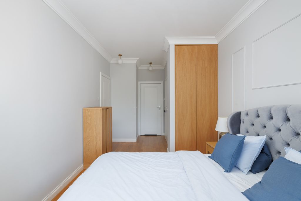 - Sypialnia z garderobą (18,43 m²) z ekspozycją wschodnią i prywatną łazienką z wanną i bidetem (5,27m²)