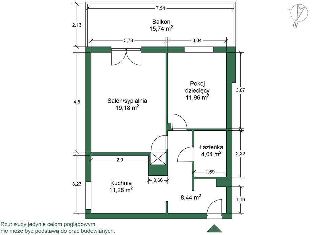 - salon/ sypialnia (19,18m2) z wyjściem na taras ( 15,72 m2)