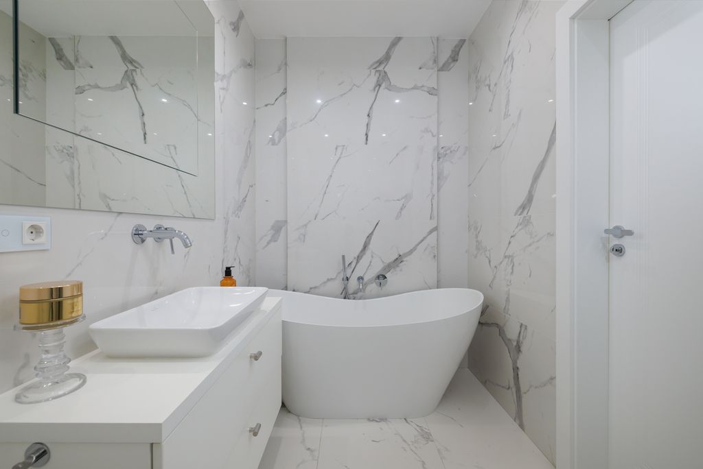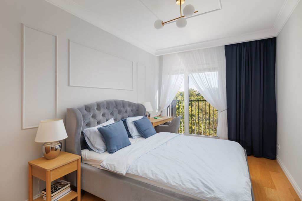 - Sypialnia z garderobą (18,43 m²) z ekspozycją wschodnią i prywatną łazienką z wanną i bidetem (5,27m²)