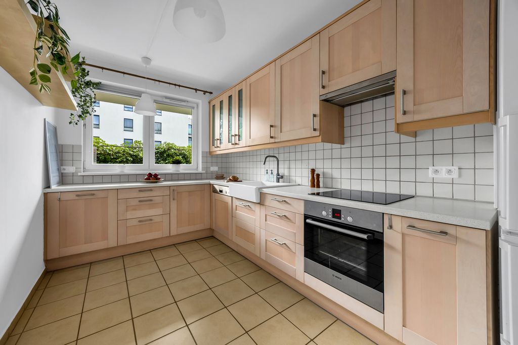 - Przestronna kuchnia z pełnym wyposażeniem AGD – zmywarką, lodówką, piekarnikiem oraz płytą grzewczą — gotowa, by inspirować kulinarnie. Miejsce, w którym gotowanie staje się przyjemnością.