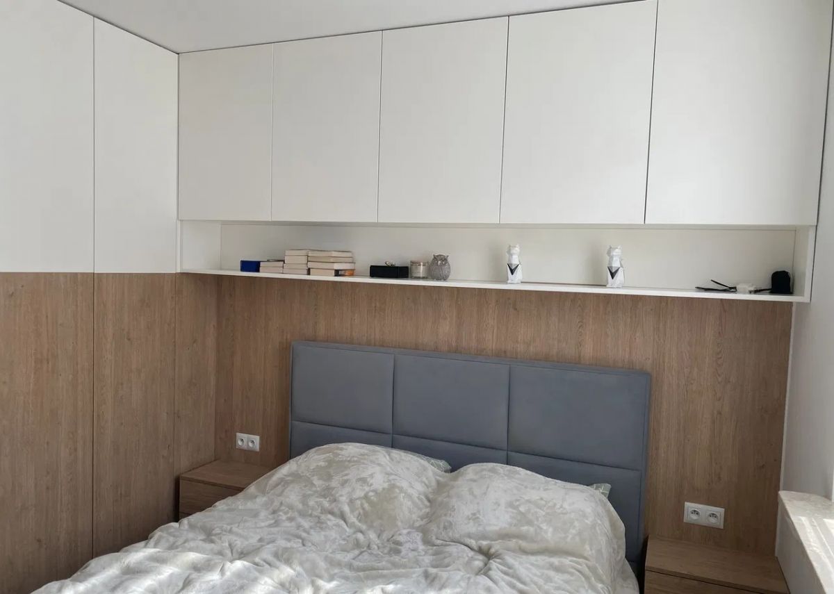 Sypialnia (11,5 m²): z dużym łóżkiem i pojemną zabudową meblową i zabudową ścienna