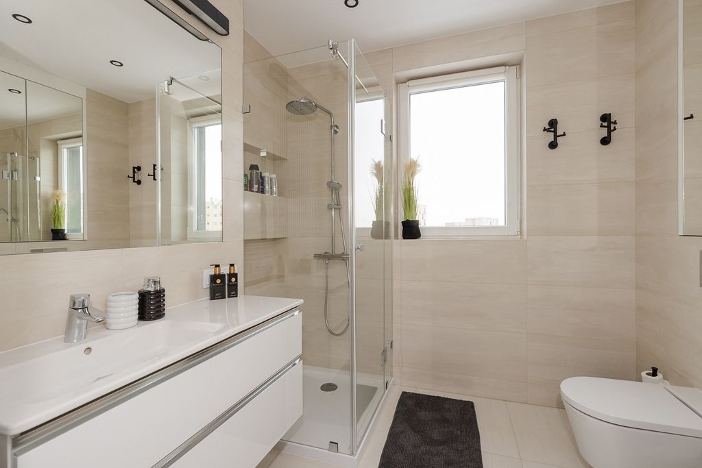 - jasna, widna łazienka z prysznicem,