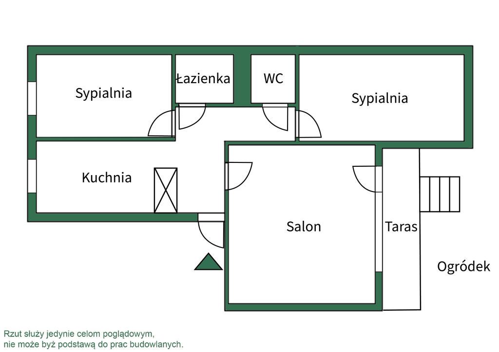 KIERUNEK OKIEN: wschód (salon z ogródkiem), południe (sypialnia), zachód (kuchnia, sypialnia)