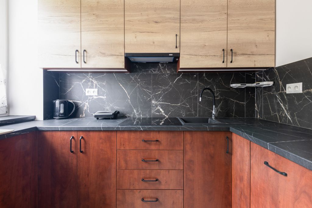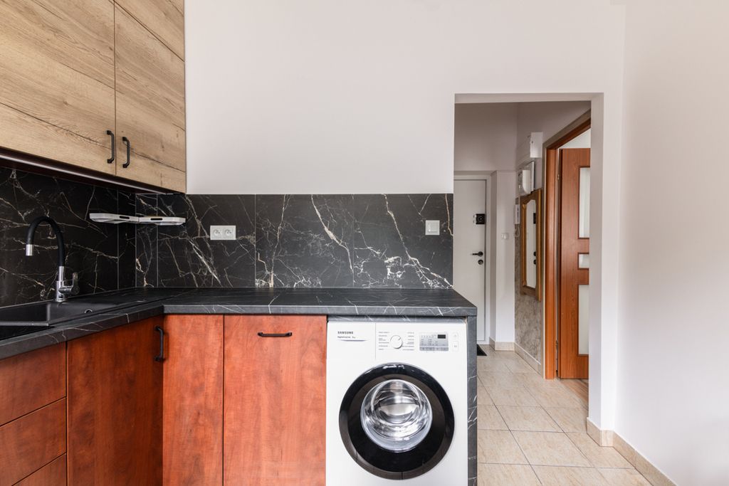 - Kuchnia: oddzielna, z nowoczesną zabudową na wymiar i wyposażeniem AGD