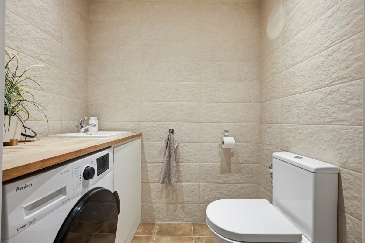 Do dyspozycji mieszkańców jest łazienka z prysznicem oraz oddzielna toaleta z wydzieloną strefą pralni, co znacząco podnosi funkcjonalność mieszkania.