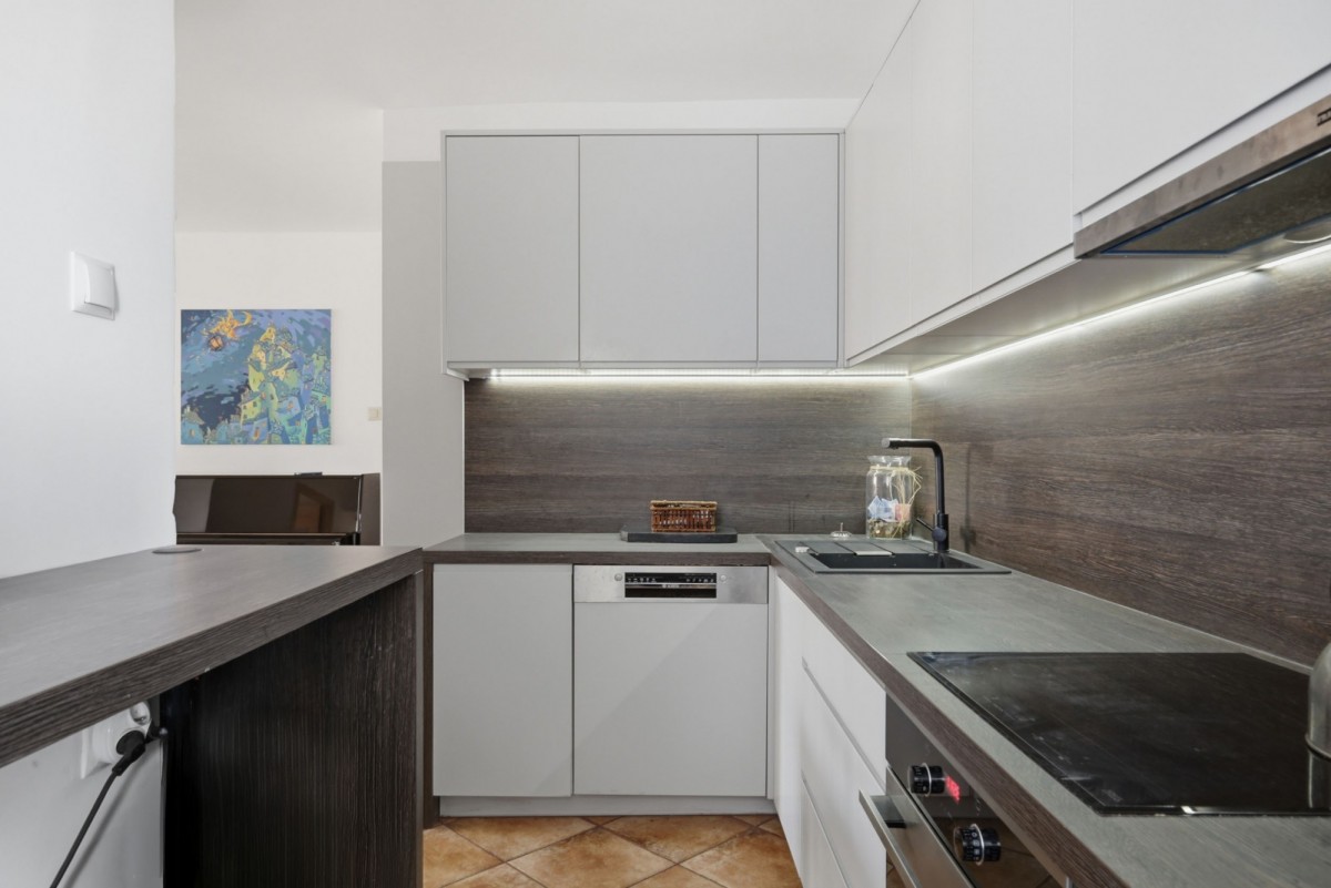 Strefa dzienna została zaprojektowana w formie salonu połączonego z otwartą kuchnią, co daje dużą, jasną przestrzeń do codziennego życia i spotkań. Dodatkowym atutem jest okno w kuchni, które zapewnia naturalne doświetlenie tej części mieszkania.