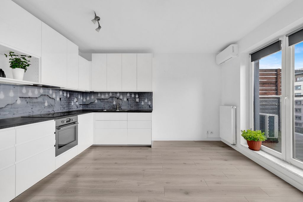 - Kuchnia w wyposażona w zmywarkę, piekarnik, płytę i okap – brakuje tylko lodówki