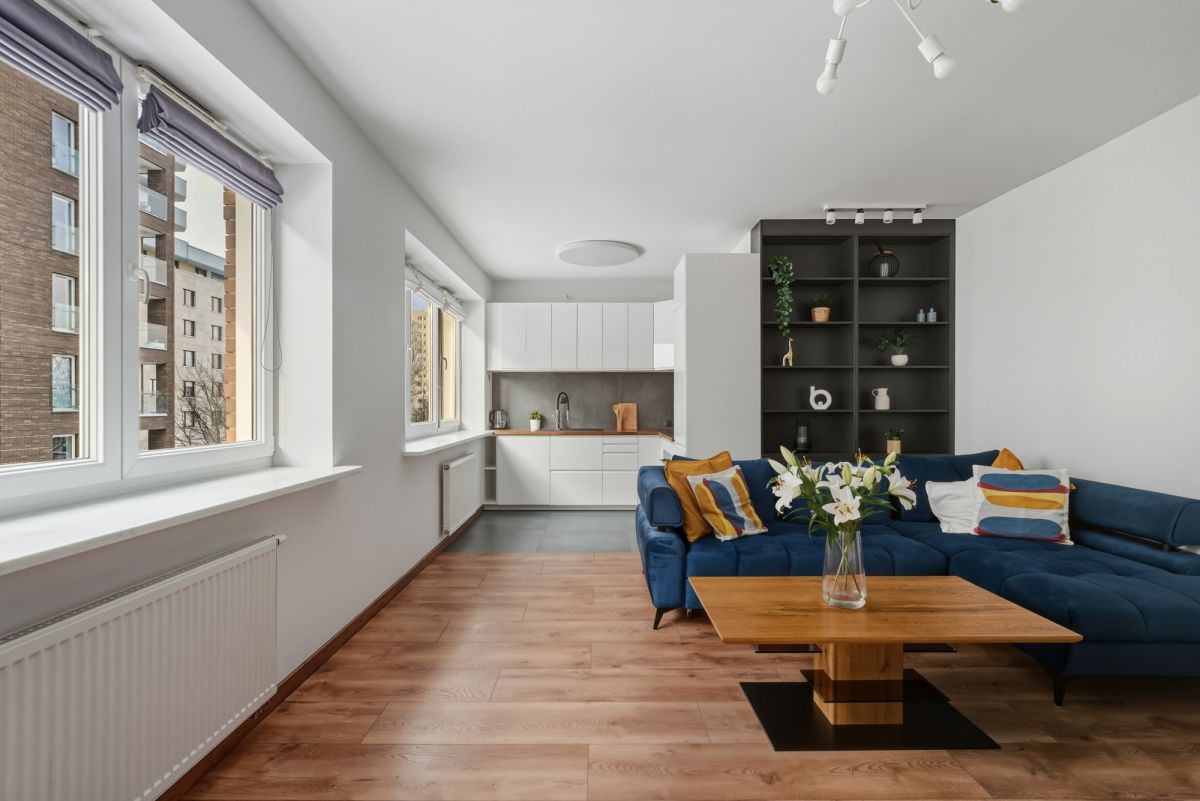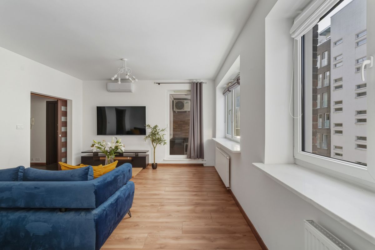 Apartament usytuowany jest na 2. piętrze nowoczesnego budynku z windą. Został zaprojektowany w sposób maksymalnie funkcjonalny, zapewniając doskonałe wykorzystanie powierzchni oraz wyraźny podział na strefę dzienną i prywatną.
