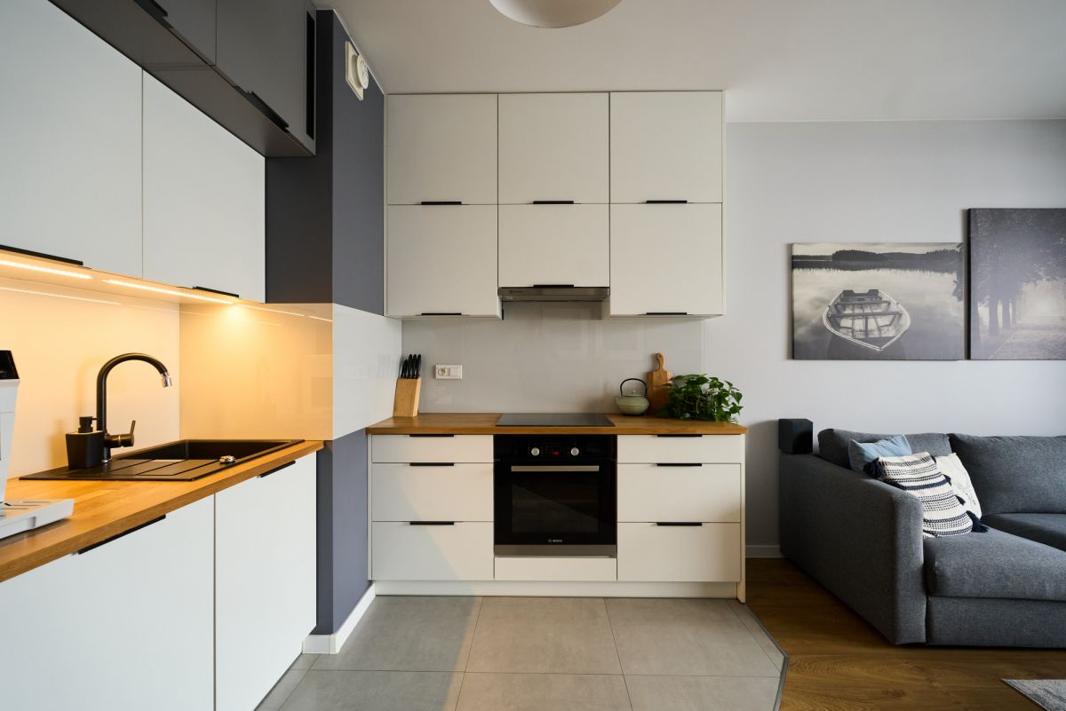 Kuchnia - W pełni wyposażona w wysokiej klasy sprzęt AGD oraz liczne szafki z dużą ilością miejsca do przechowywania. Funkcjonalny układ - zapewnia wygodę podczas gotowania.