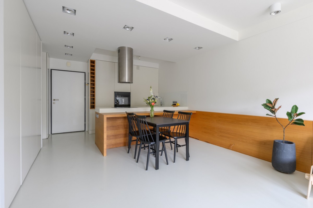 Powierzchnia 48,5 m² została zaprojektowana przez uznane studio Paulokaa Design, tworząc spójną i funkcjonalną całość.