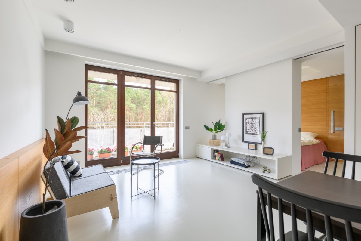 To unikatowe mieszkanie w budynku z 2010 roku łączy designerskie wnętrze i bezpośredni kontakt z naturą.