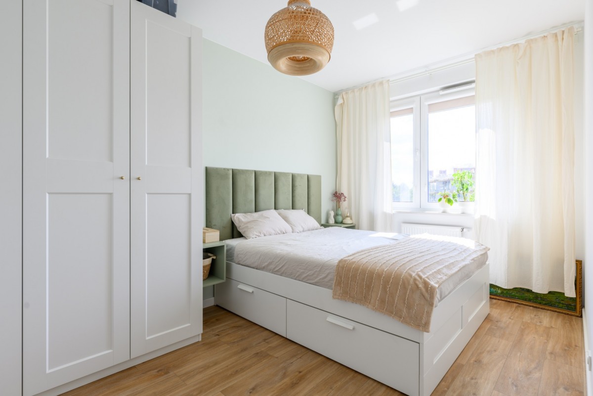 • przestronna sypialnia z dużą szafą, która zapewnia miejsce do przechowywania
