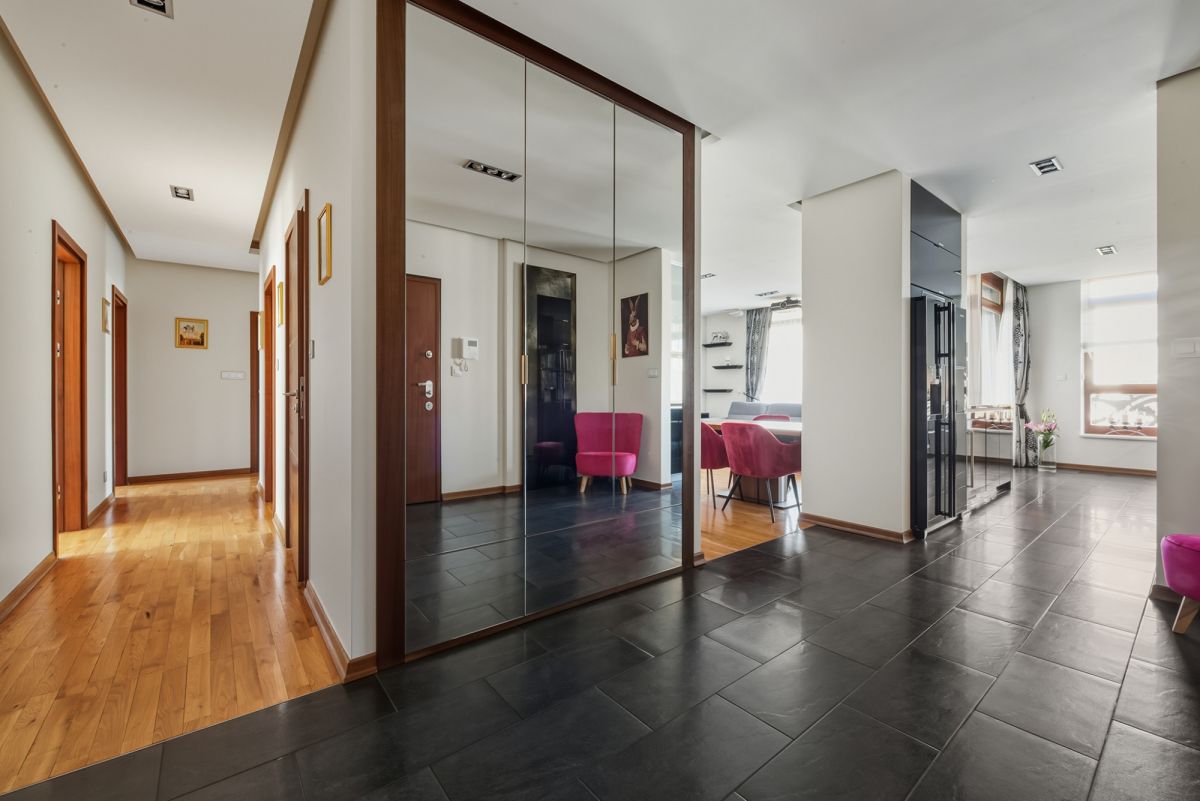 Apartament sprzedawany jest wraz z dużą częścią znajdującego się w nim wyposażenia i mebli. Mieszkanie wyróżnia się wyjątkowo dużą ilością miejsca do przechowywania - do dyspozycji mieszkańców jest nie tylko oddzielna, zamykana garderoba oraz schowek na tarasie, ale także liczne zabudowy i pojemne szafy w pomieszczeniach.