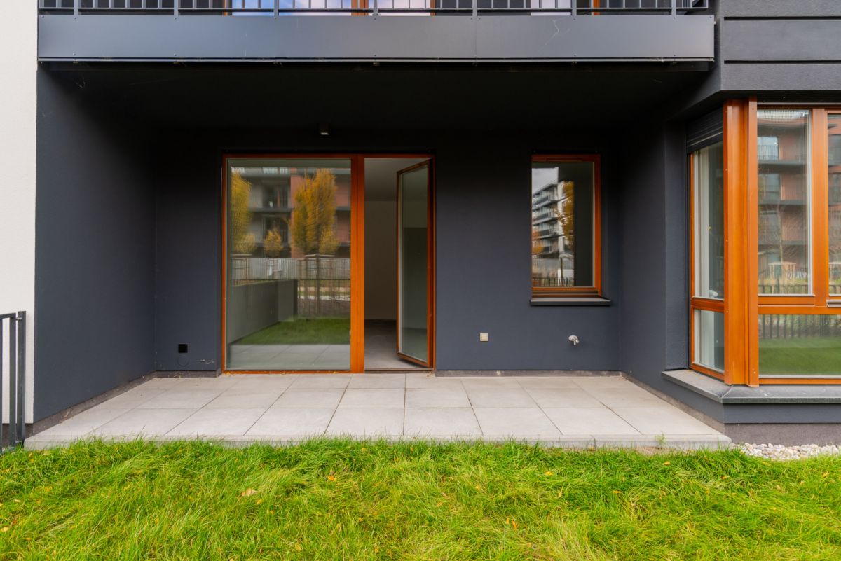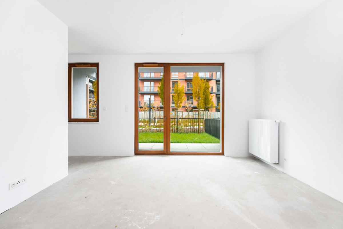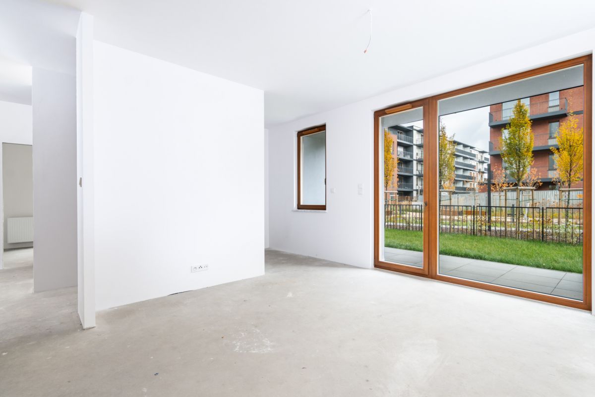 Apartament w stanie deweloperskim, z wyjątkowym potencjałem, przemyślanym układzie i przestrzeni ogrodowej, która otacza mieszkanie z dwóch stron. Powierzchnia wewnętrzna i zewnętrzna tworzą tu harmonijną całość - z drewnianymi, panoramicznymi oknami, przez które ogród staje się naturalnym przedłużeniem salonu.