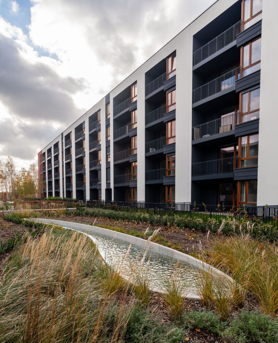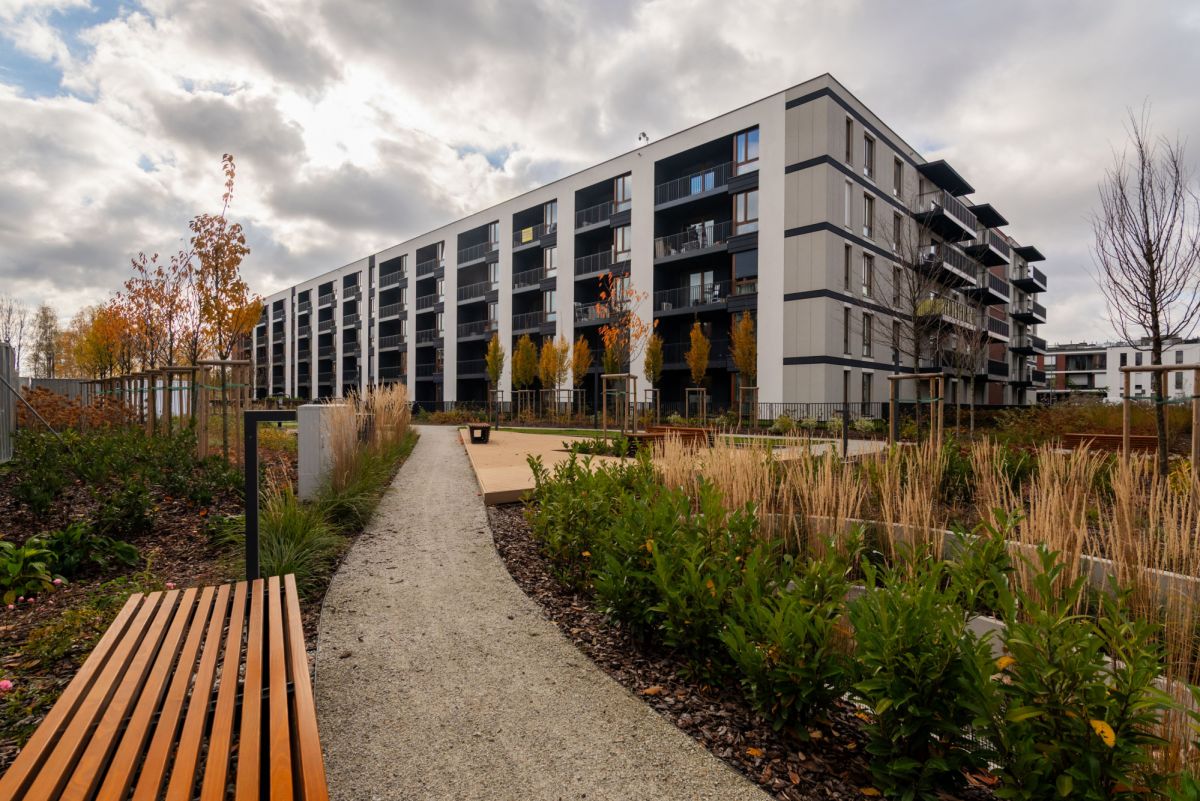 Budynek znajduje się w centralnej części inwestycji między dwiema zabudowami co zapewnia ciszę, stabilny mikroklimat i dodatkową izolację cieplną.