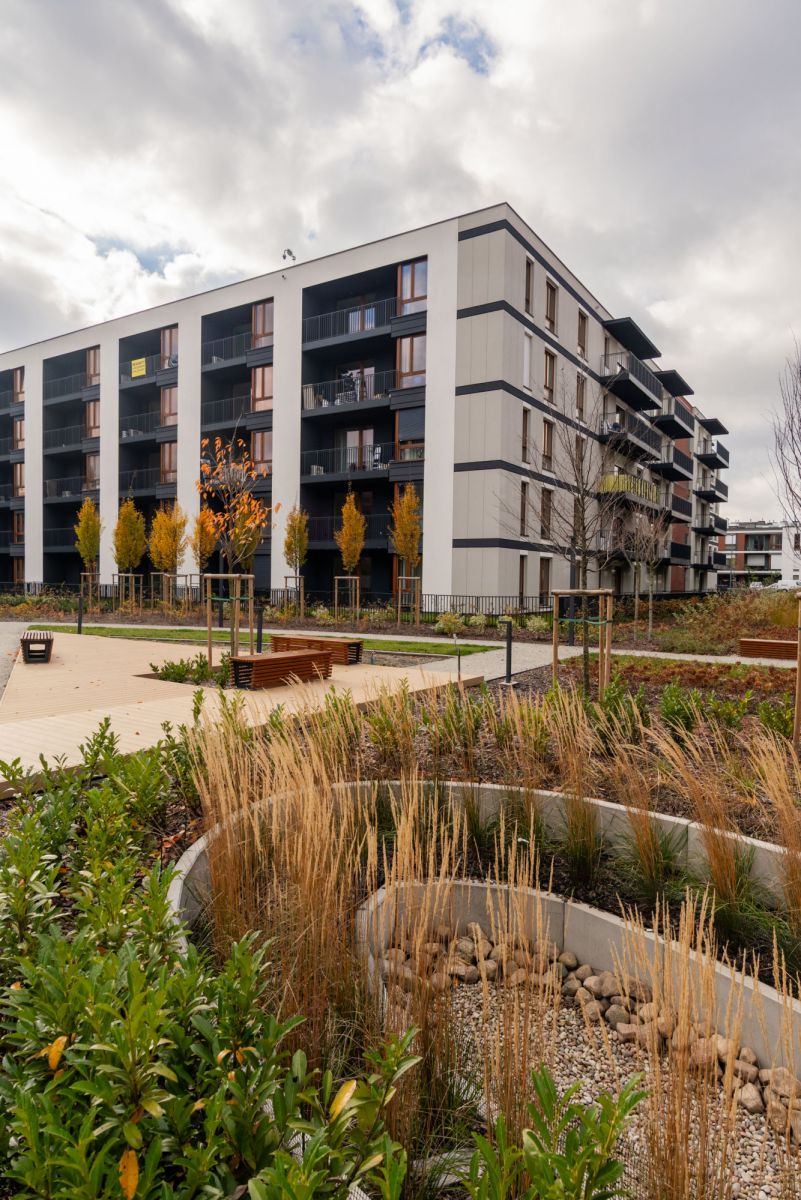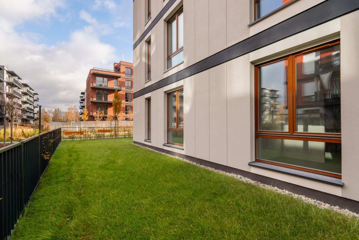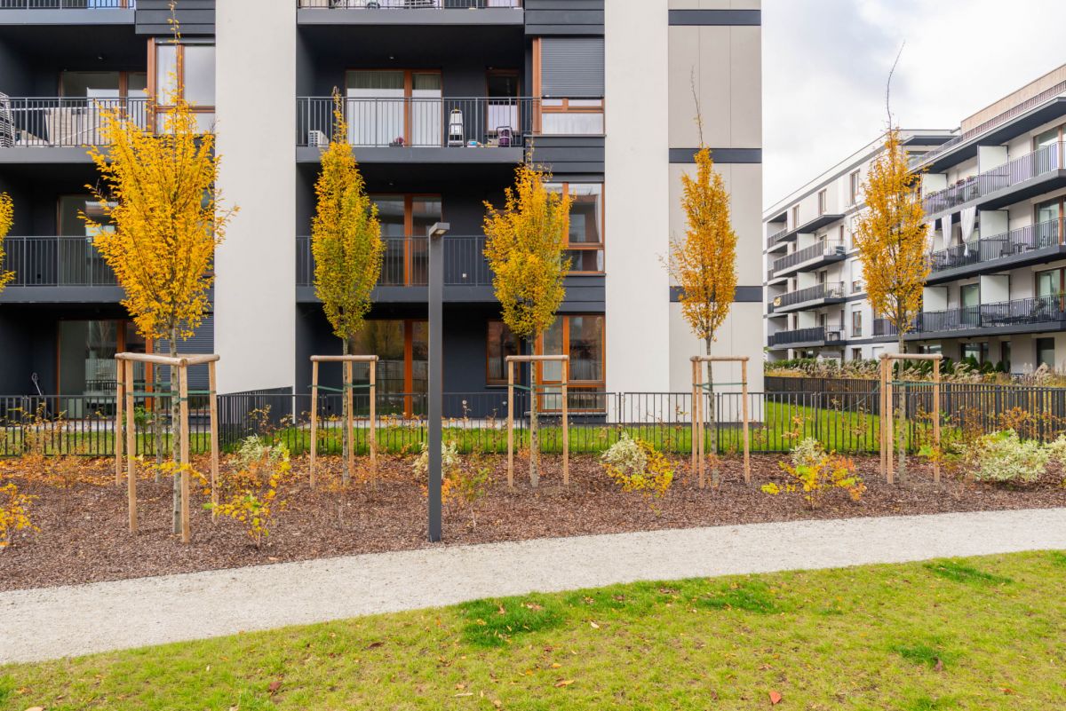 Ogród o powierzchni 113 m stanowi prywatną zieloną strefę relaksu z gotową trawą, rozciąga się on wzdłuż spokojnego patio tylko dla mieszkańców budynku, z oczkami wodnymi, starannie zaprojektowaną roślinnością. Przed ogrodem posadzone są drzewa, które, będą tworzyć naturalny szpaler.