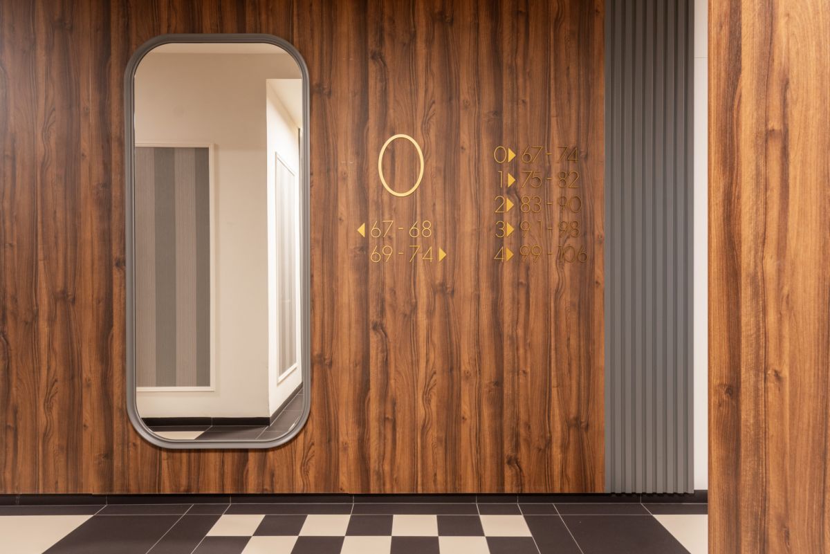 Do dyspozycji mieszkańców oddano dwupoziomowe lobby z portierem, wewnętrzna strefę fitness z sauną, pokój do jogi oraz klub dla dzieci. Całość uzupełniają nowoczesne rozwiązania proekologiczne: panele fotowoltaiczne, energooszczędne oświetlenie LED oraz światłowodowy dostęp do internetu. W garażu podziemnym znajdują się stacje ładowania samochodów elektrycznych.