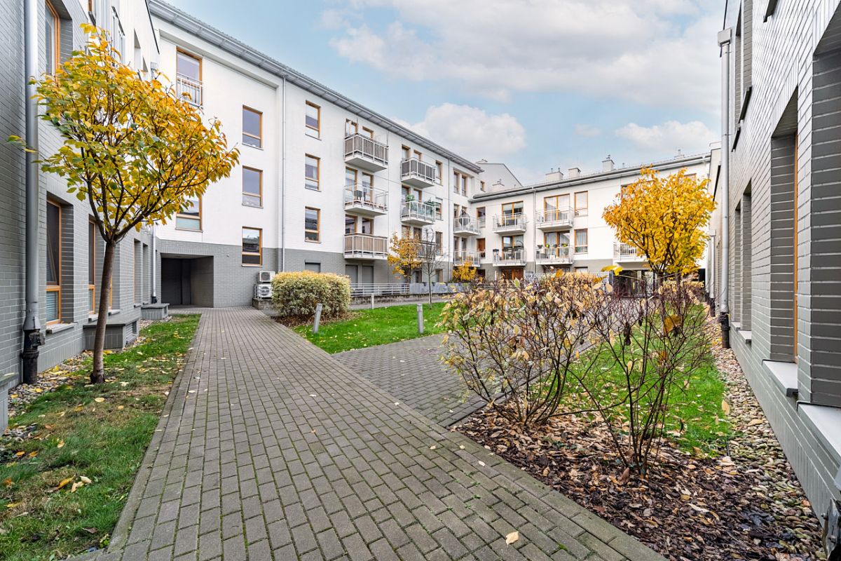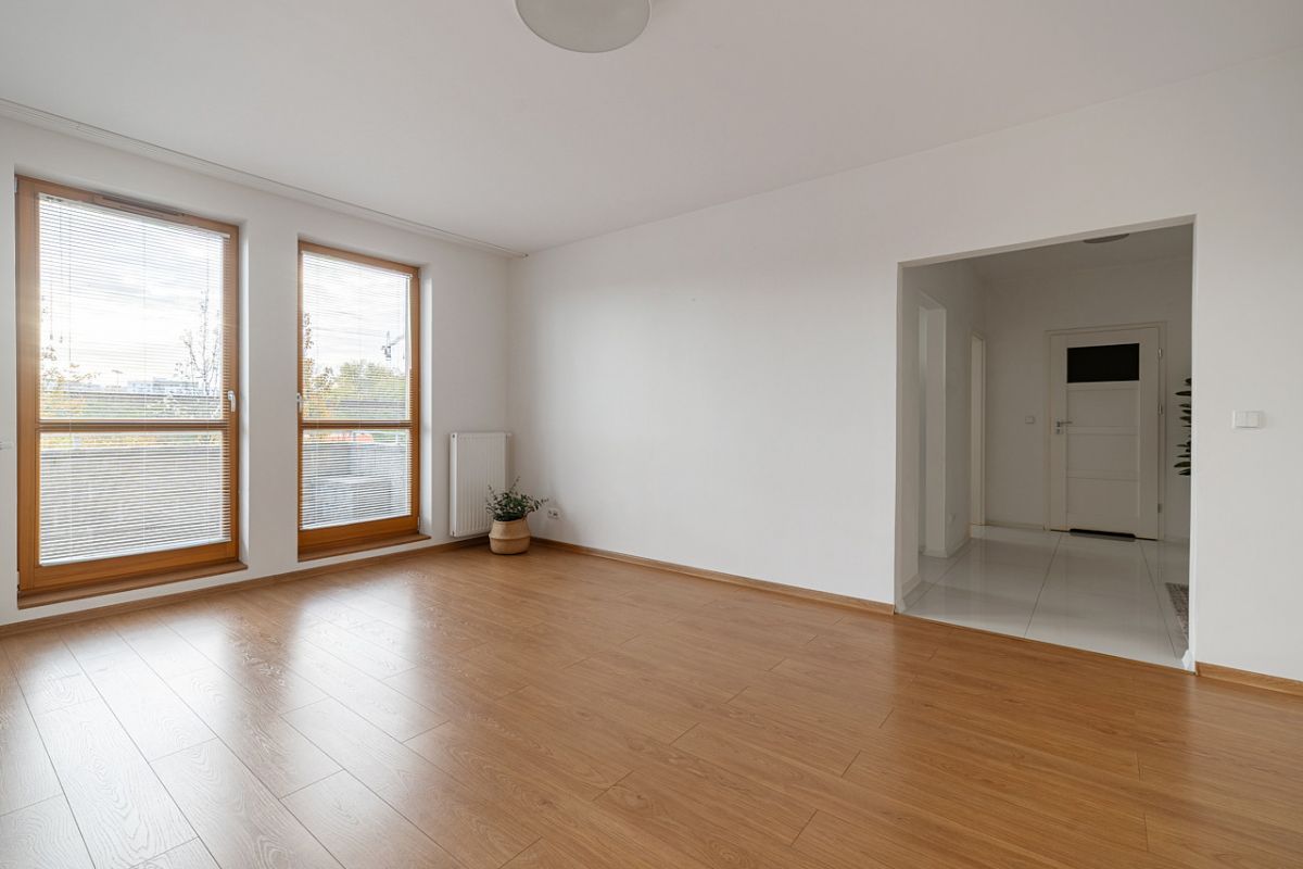 Na sprzedaż funkcjonalne i komfortowe 2-pokojowe mieszkanie o powierzchni 55 m², położone na parterze nowoczesnego budynku z 2014 roku z ogródkiem o pow. 23m2, miejscem postojowym w garażu oraz komórką lokatorską | Włochy, ul. Obywatelska.