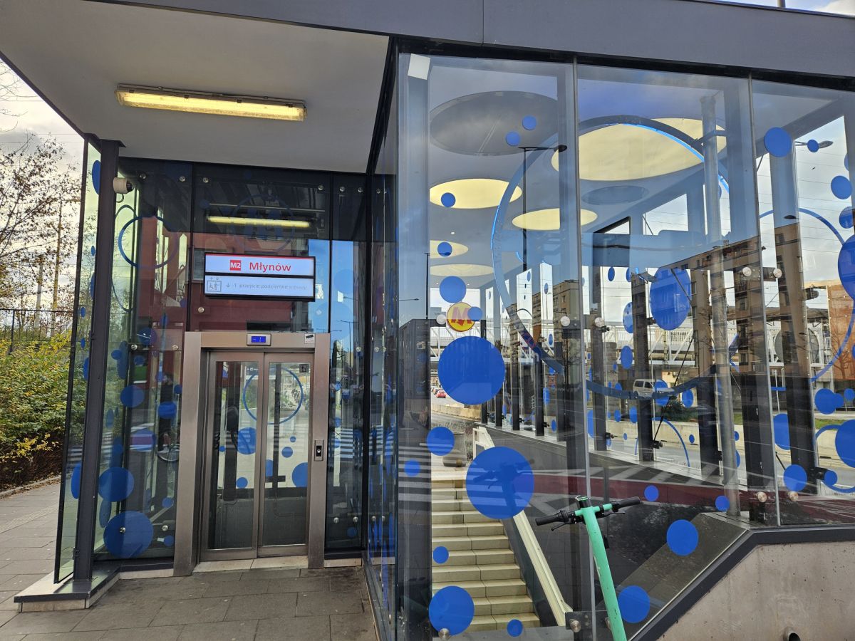 Zdecydowanym atutem jest położenie: w budynku Biedronka, zaraz obok Auchan, fryzjer, stomatolog Qdent, klinika piękności, pizzeria, Soho sushi, apteka, kawiarnia i lodziarnia. Lokalizacja wyśmienita - 100 metrów od wejścia do stacji metra Młynów oraz 150 metrów do stacji SKM Młynów, 150 metrów do zjazdu na S8 na Al. Prymasa Tysiąclecia.